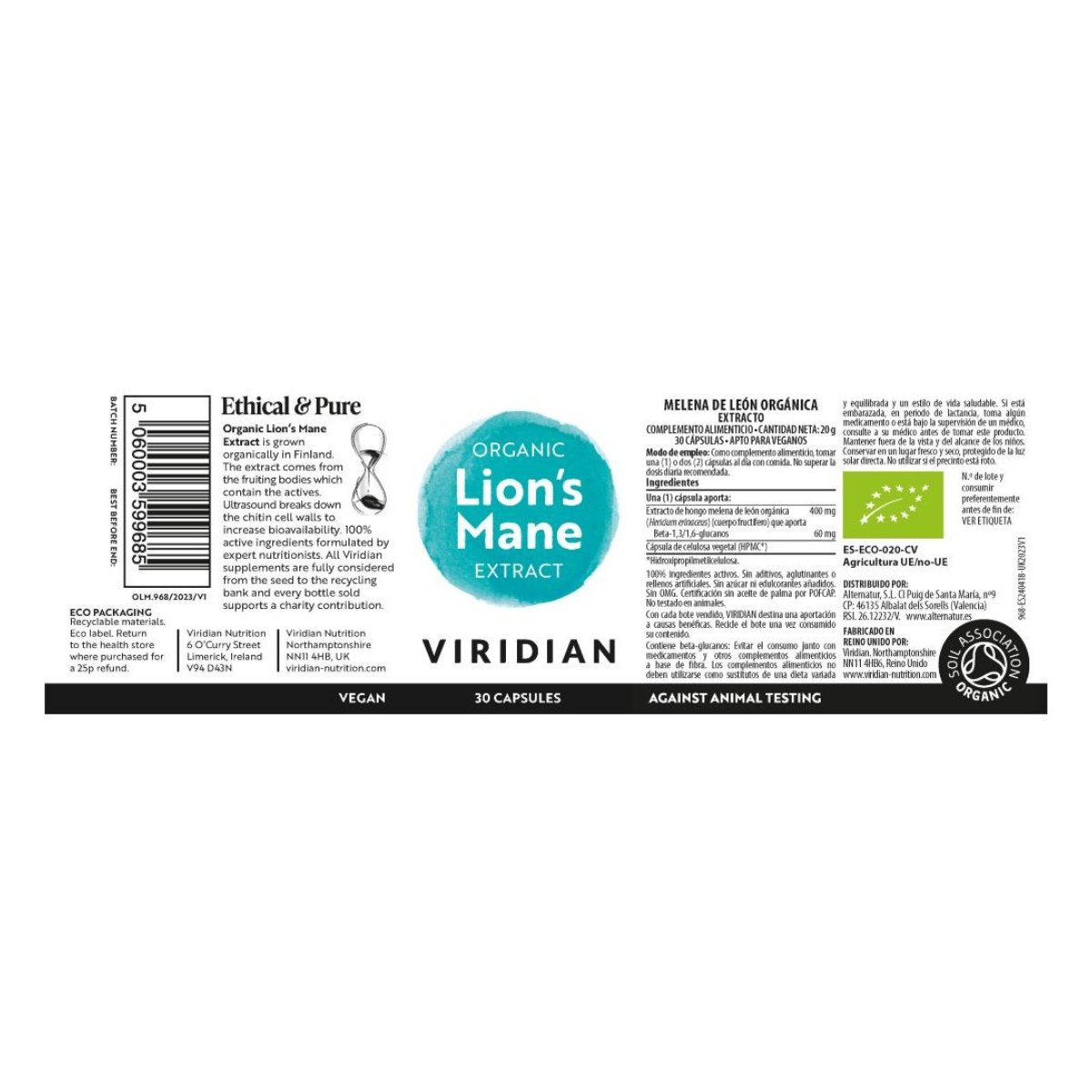 Toda la información sobre "Melena de león extracto orgánica Viridian 30 cápsulas"