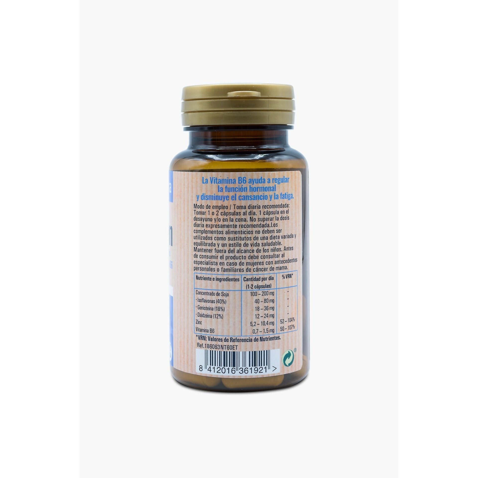 Complemento alimenticio elaborado a base de concentrado de soja, zin y vitamina B6. Contribuye al bienestar óseo y a la mejora de los síntomas asociados a la menipausia.