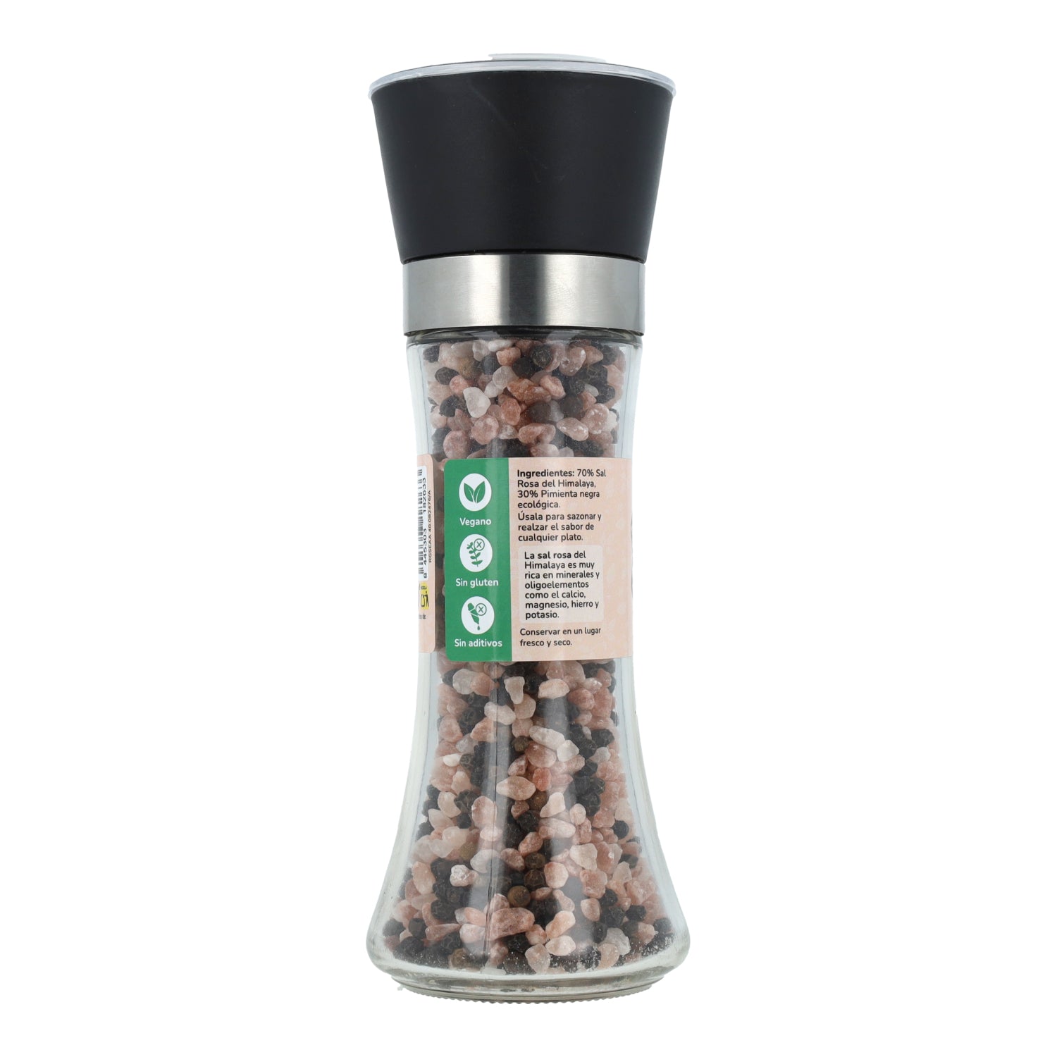 Sal Rosa (70%), Pimienta negra (30%).