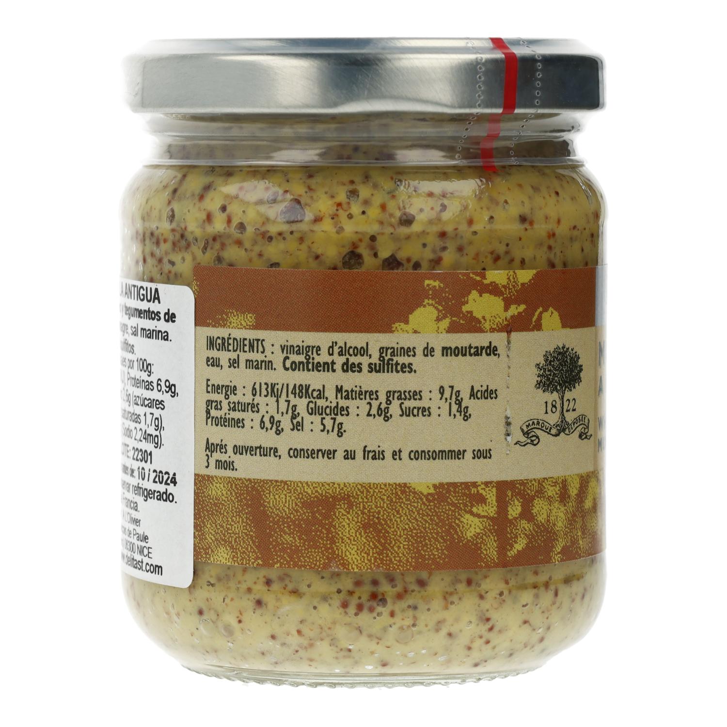 Mostaza francesa a la Antigua, ideal para carnes blancas, asados y vinagretas.