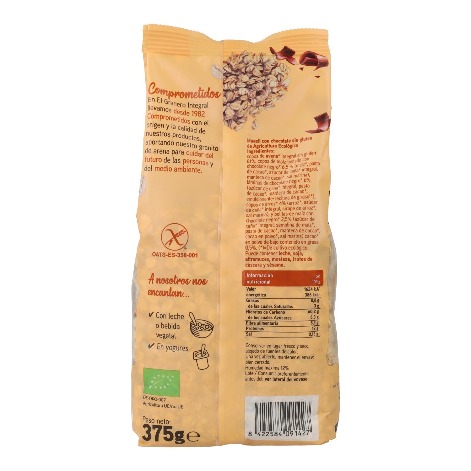 Muesli con Chocolate Sin Gluten Bio El Granero, 375gr