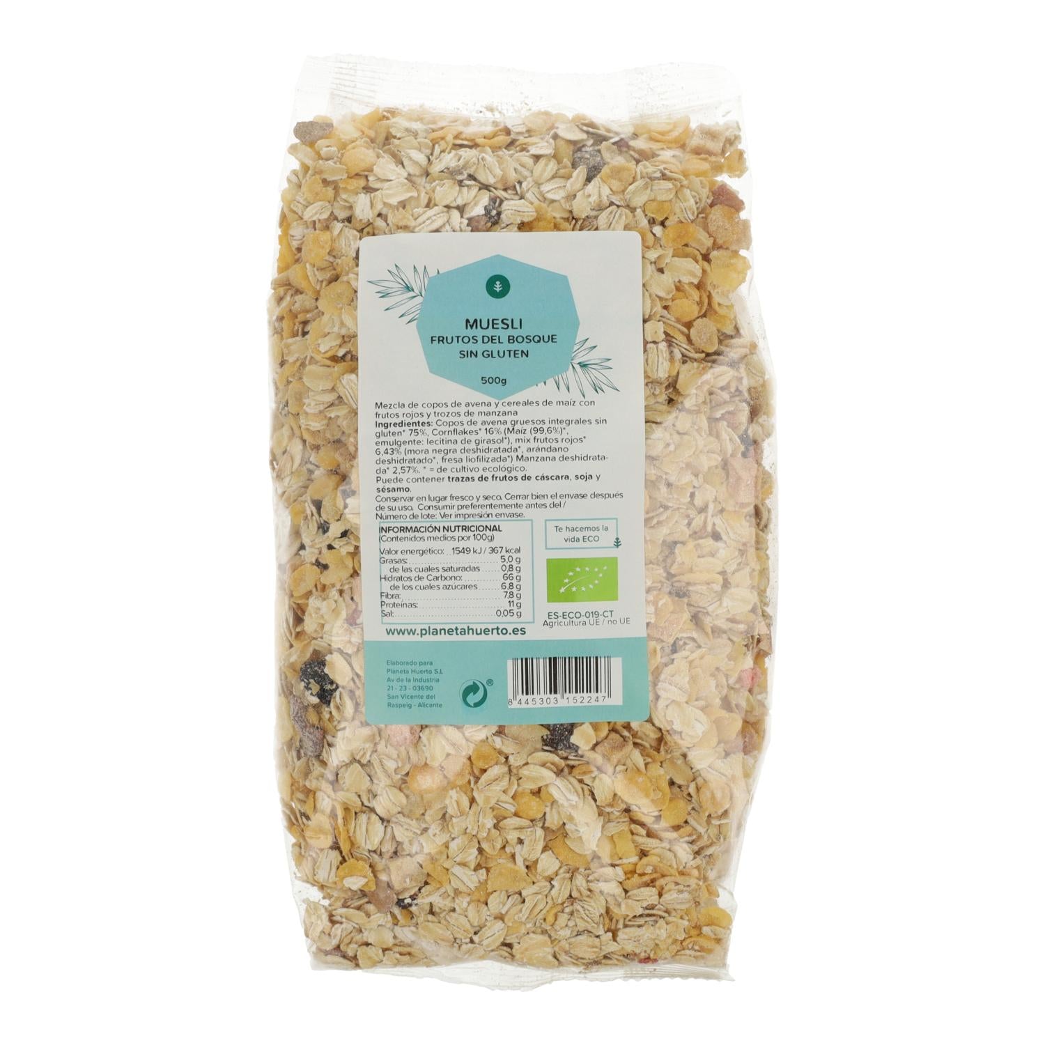 Toda la información sobre "Muesli Sin Gluten Frutas del bosque ECO Planeta Huerto 500 g"