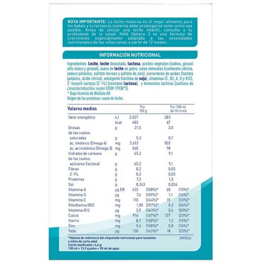 Toda la información sobre "Nan Optipro 3 Leche de crecimiento a partir de 1 año Nestlé 1200 g"