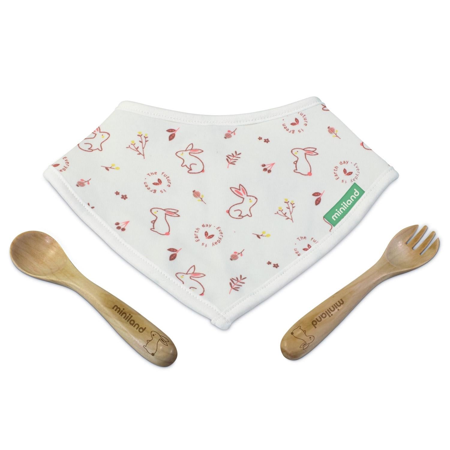 Bandana de algodón natural, una Cuchara y un Tenedor de madera.