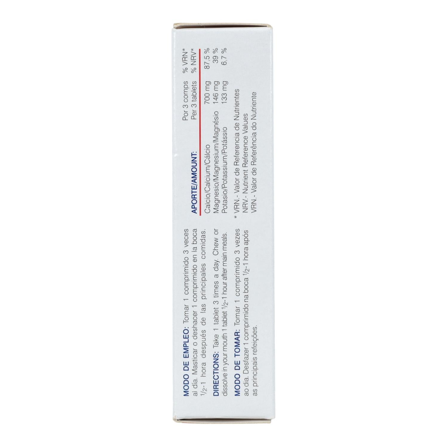 Por comprimido: Carbonato cálcico, estabilizante: celulosa microcristalina, citrato potásico, hidróxido de magnesio, estabilizante: fosfato dicálcico, patata cruda liofilizada (Solanum tuberosum L, tubérculo) (71,75 mg), estabilizante: goma guar, antiaglomerante: dióxido de silicio, corrector de acidez: ácido cítrico, aroma, antiaglomerante: sales magnésicas de ácidos grasos, edulcorante: taumatina