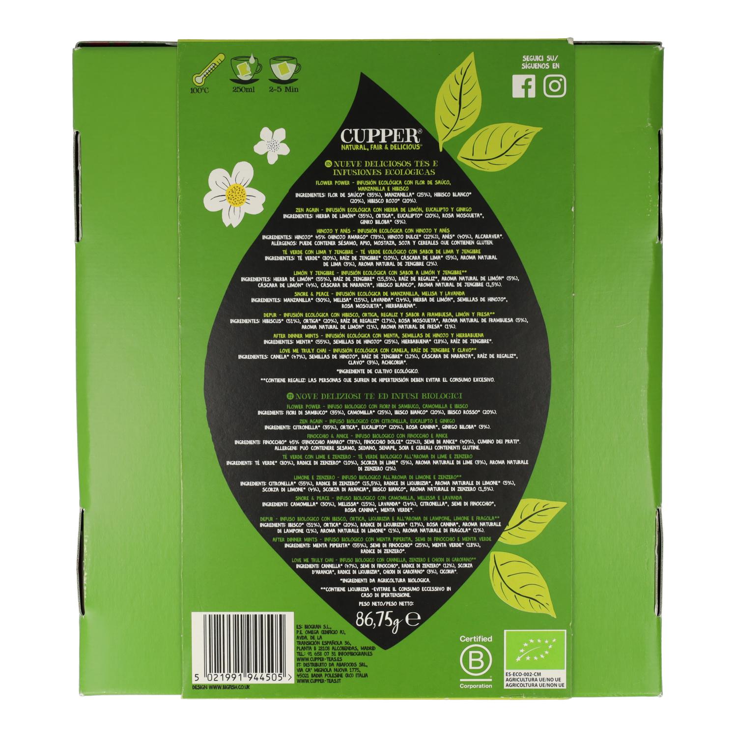 Pack 45 bolsitas de Infusiones y Tés Ecológicos Cupper 9 Sabores