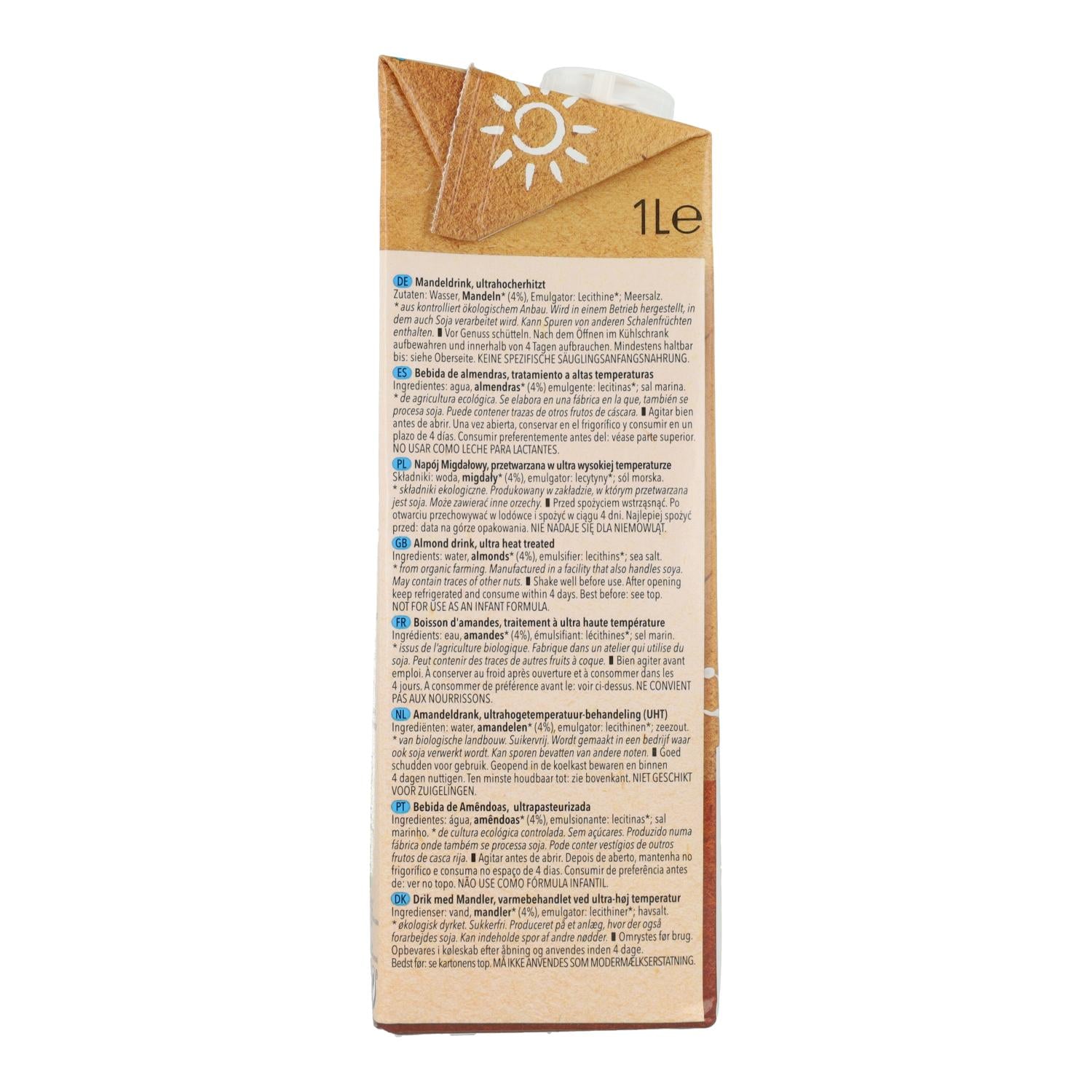 agua, almendras (4%)*, lecitina de girasol, sal marina.