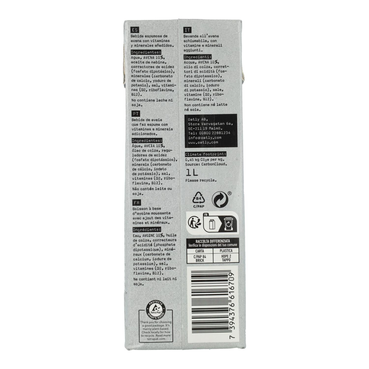 Toda la información sobre "Pack 6 uds Bebida Avena Barista Oatly 1 L"