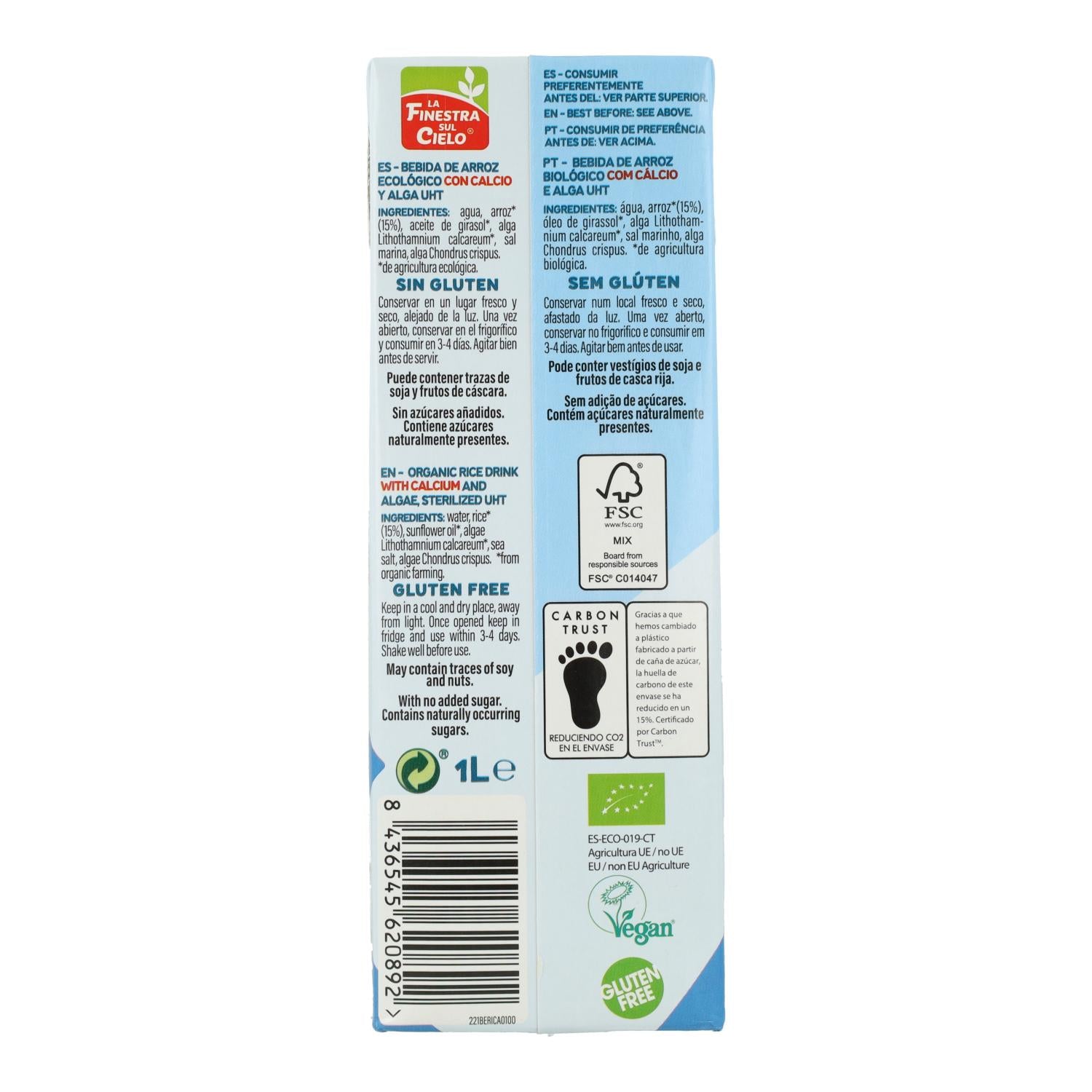 Toda la información sobre "Pack 6 x Bebida de Arroz con Calcio La Finestra Sul Cielo 1 L"