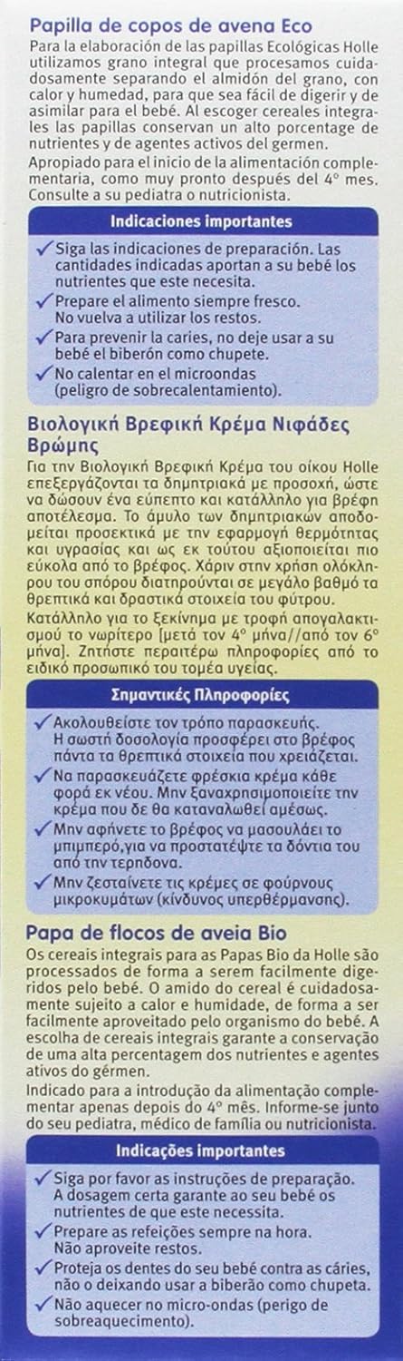 Toda la información sobre "Papilla BIO de copos de avena +4 meses Holle 250 g"