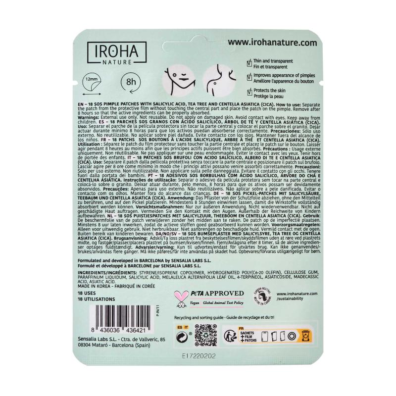 Toda la información sobre "Parches SOS Granos Ácido Salicílico, Árbol de Té y Centella Asiática Iroha Nature"