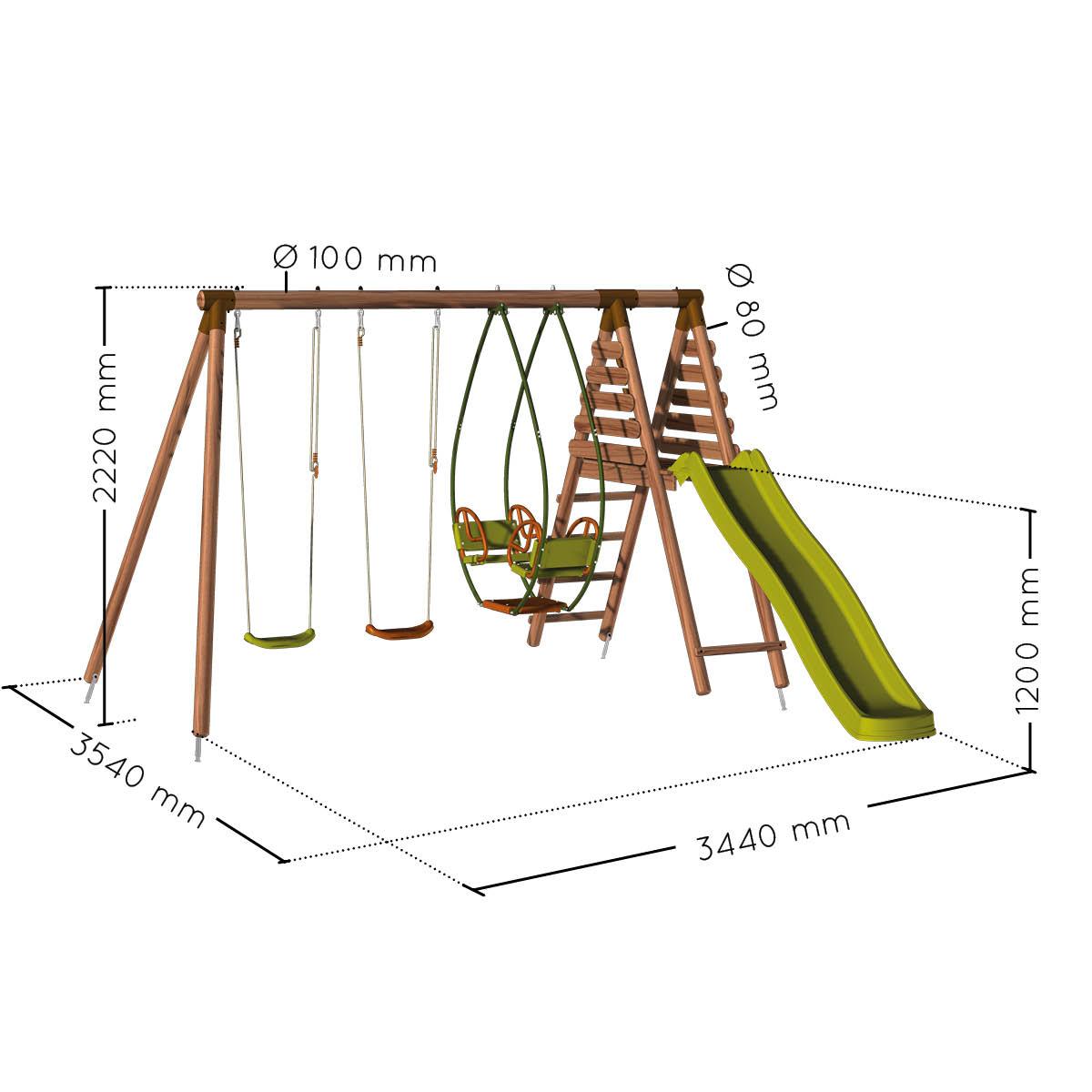 Esta estructura de madera, entregada en kit, la podrá montar usted mismo con la ayuda de otra persona como mínimo, en solo 3 horas. Con los mosquetones de acero y la viga agujereada previamente, los distintos juegos son muy sencillos de instalar.