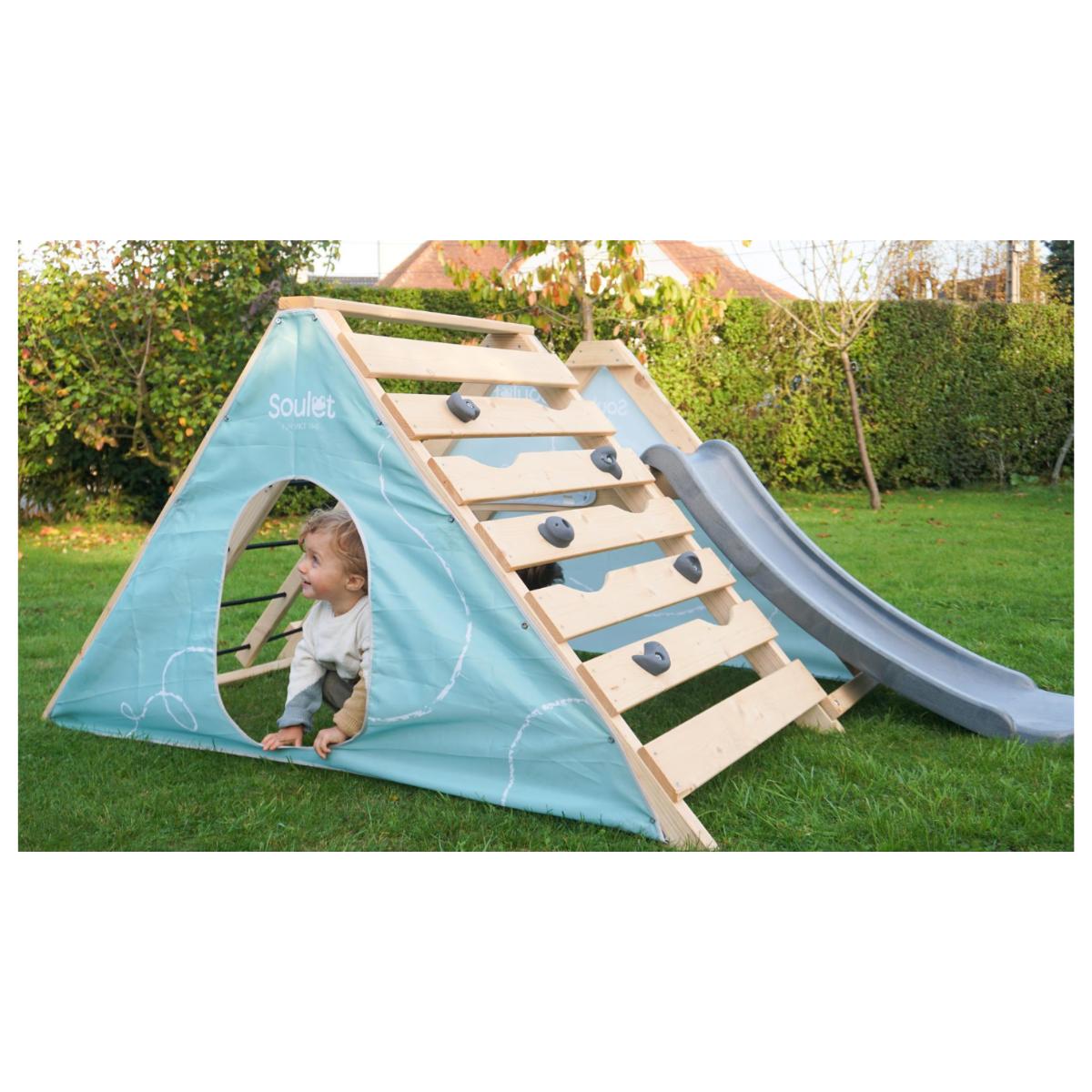 Escalada o red, tu hijo elegirá el método que más le convenga. El rocódromo está equipado con presas adaptadas a las manos de los más pequeños, y el muro de red está equipado con barras que permiten una mejor anticipación.