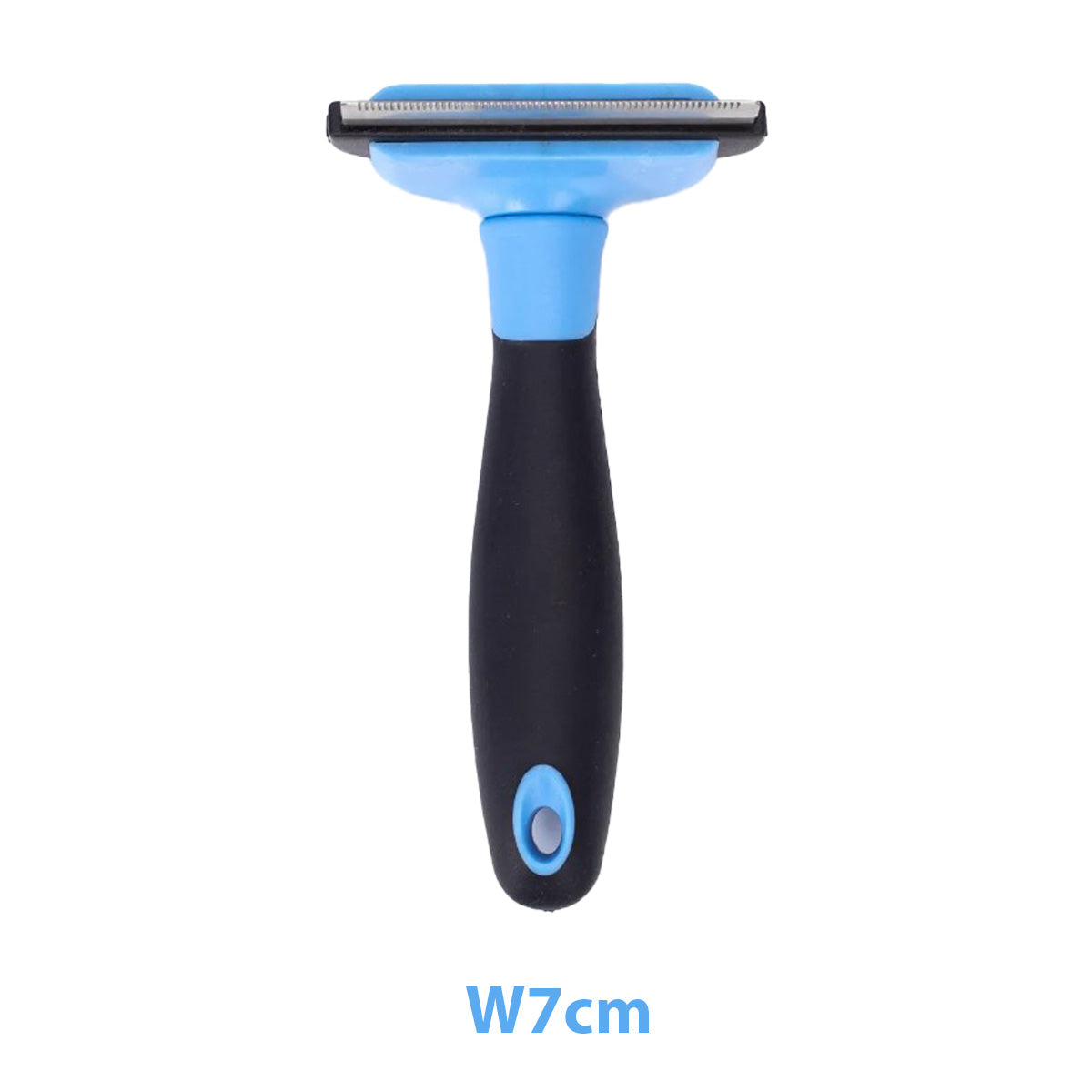 Cuchilla de doble cara para anudar y eliminar rápidamente el pelo superficial.