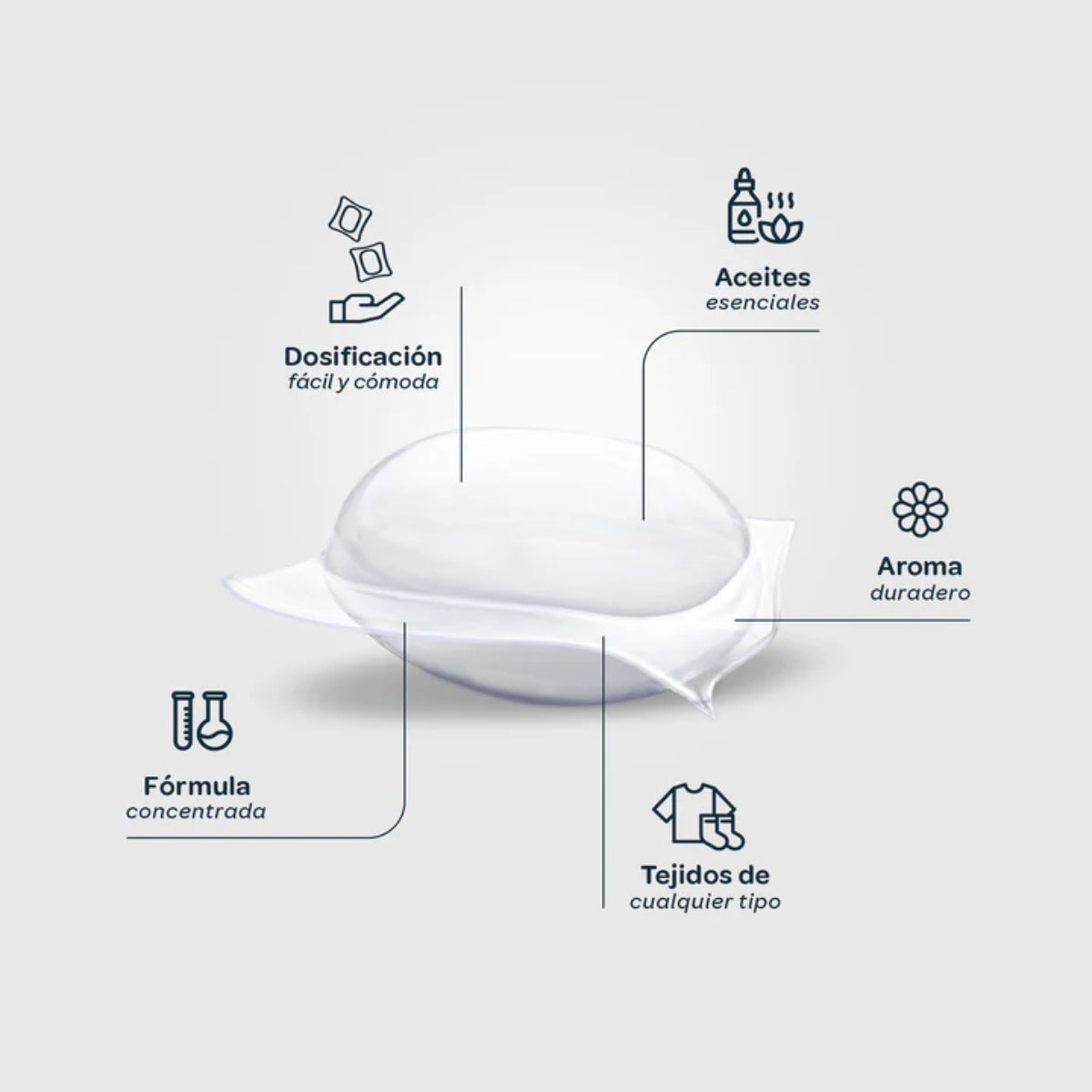 Dale a tu ropa un extra de frescura con nuestro Perfume para la Ropa. Su fórmula con aceites esenciales naturales garantiza una experiencia única en cada lavado. Dosificación precisa en cápsulas hidrosolubles, sin derrames ni excesos. ¡Siente la diferencia en cada prenda!