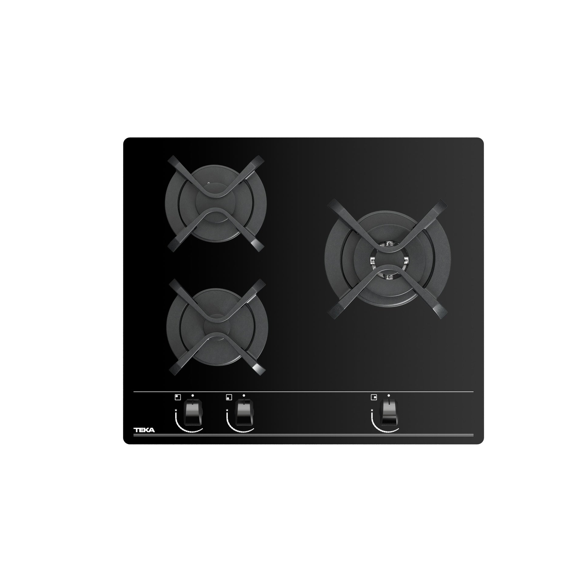 Placa de Gas 3 Zonas Teka GBC 63010 cristal templado Negro Gas Natural