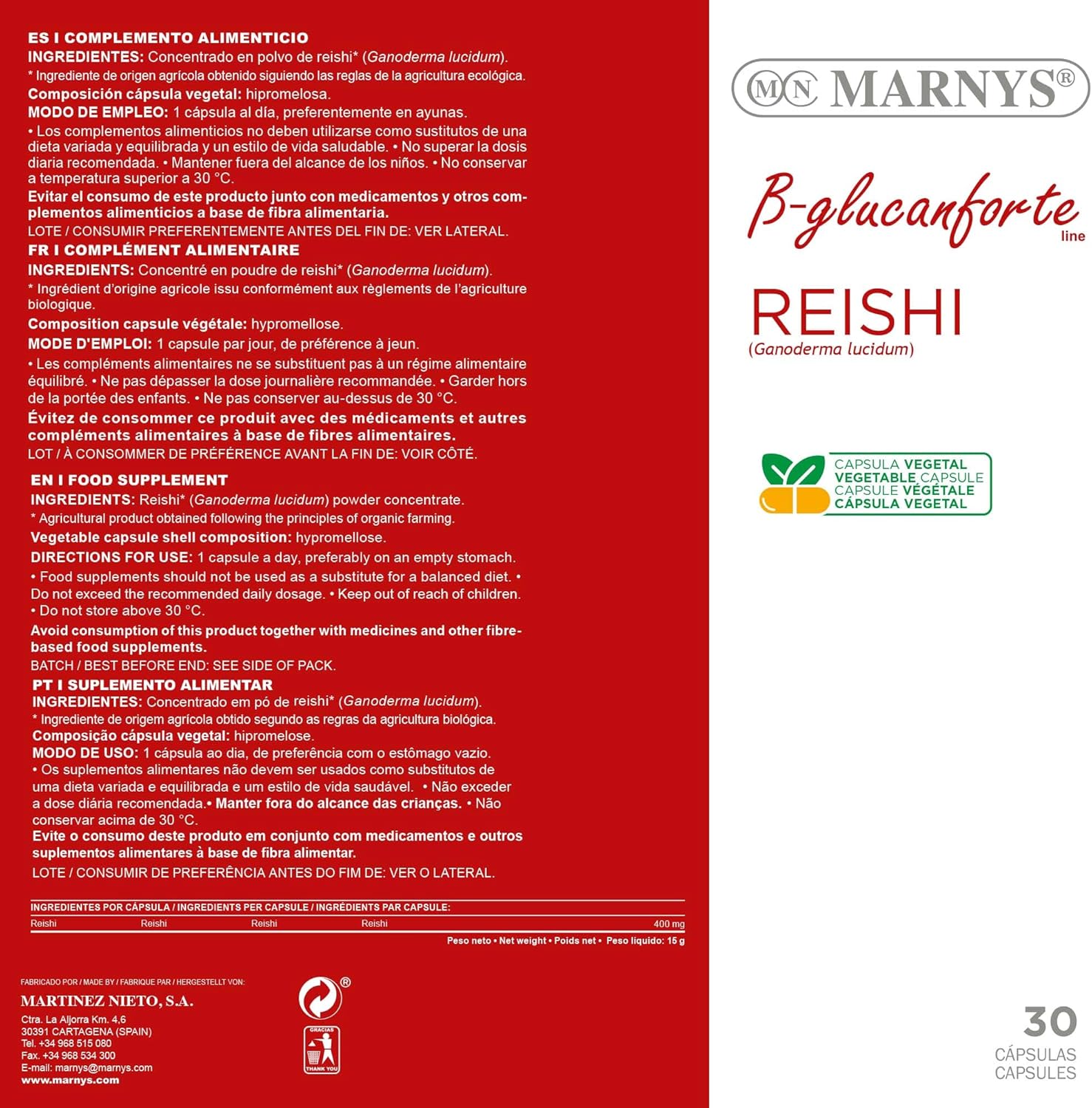 Toda la información sobre "Reishi Bio 400 mg 30 cápsulas Marnys"