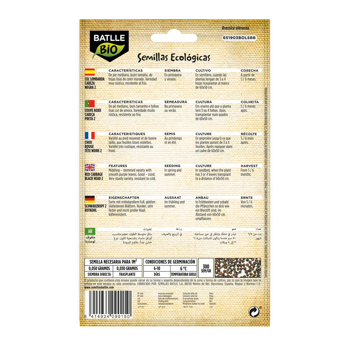 - Formato del paquete: Sobre de semillas ecológicas Batlle