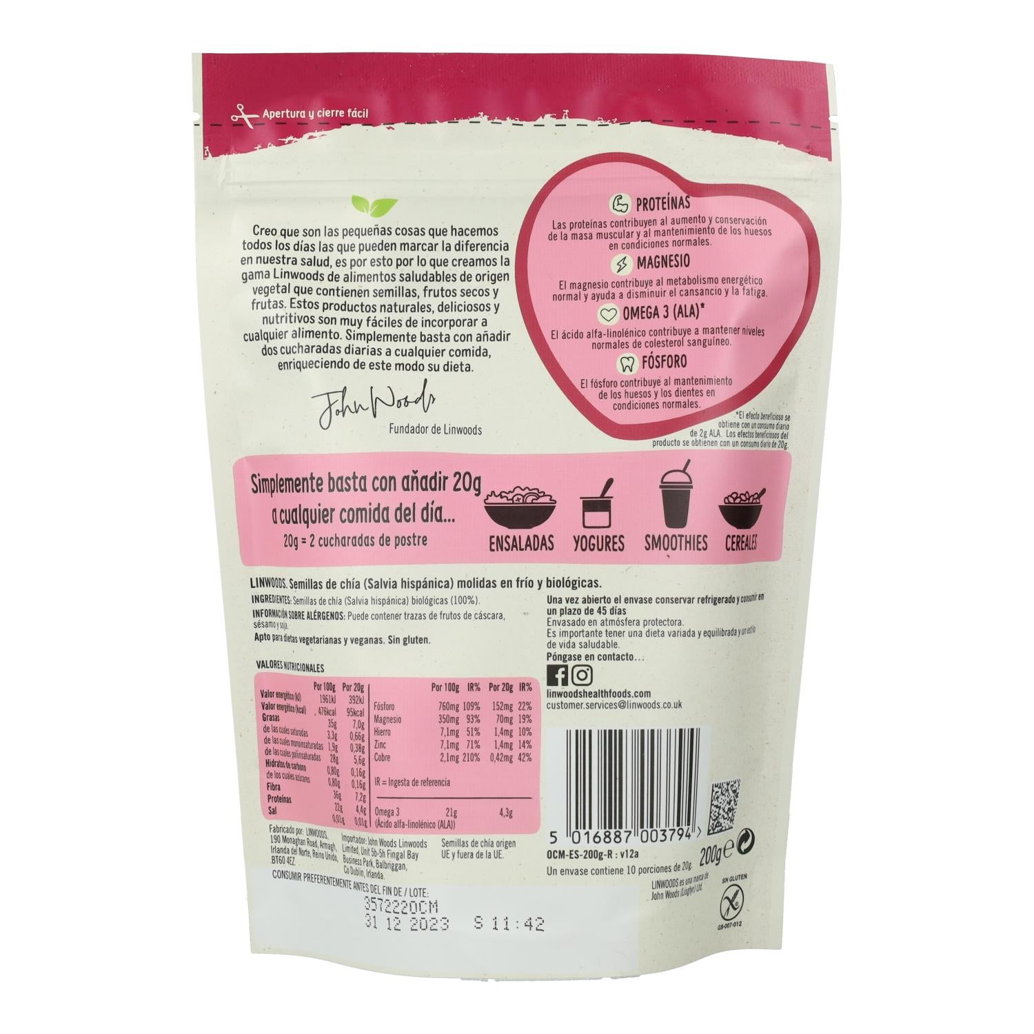 Toda la información sobre "Semillas de chía molidas, bio Linwoods 200 g"