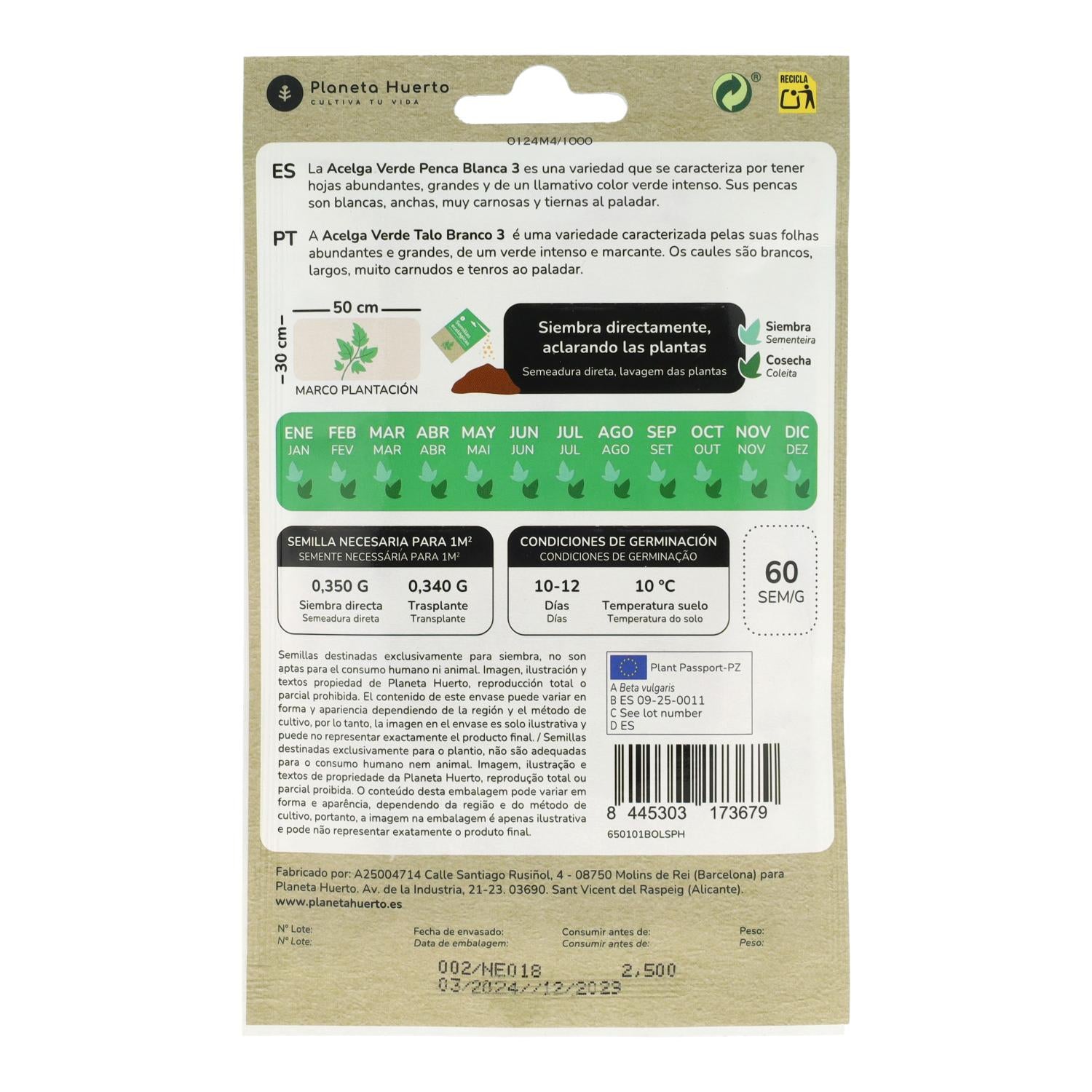 Toda la información sobre "Semillas de Acelga Verde ecológicas Planeta Huerto"