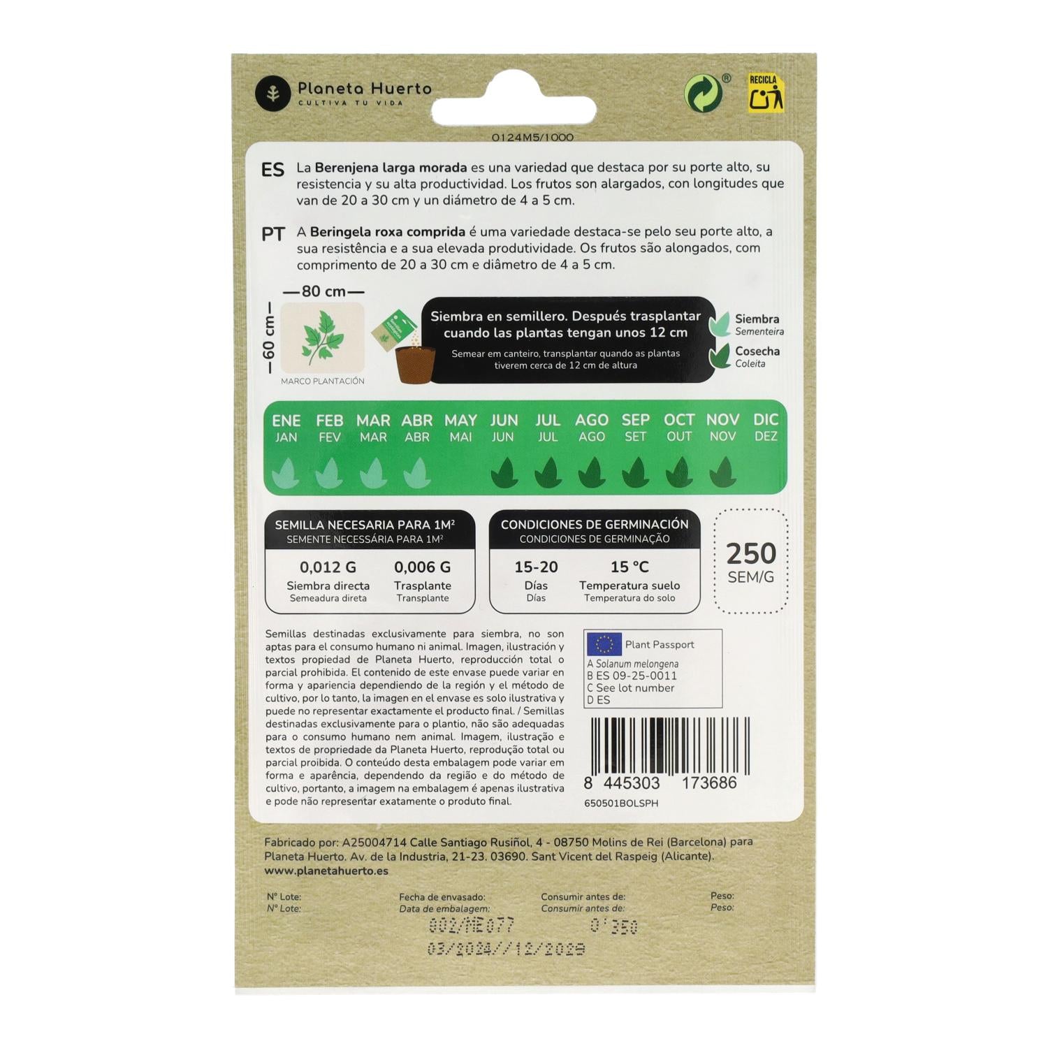 Toda la información sobre "Semillas de Berenjena larga morada ecológicas Planeta Huerto"