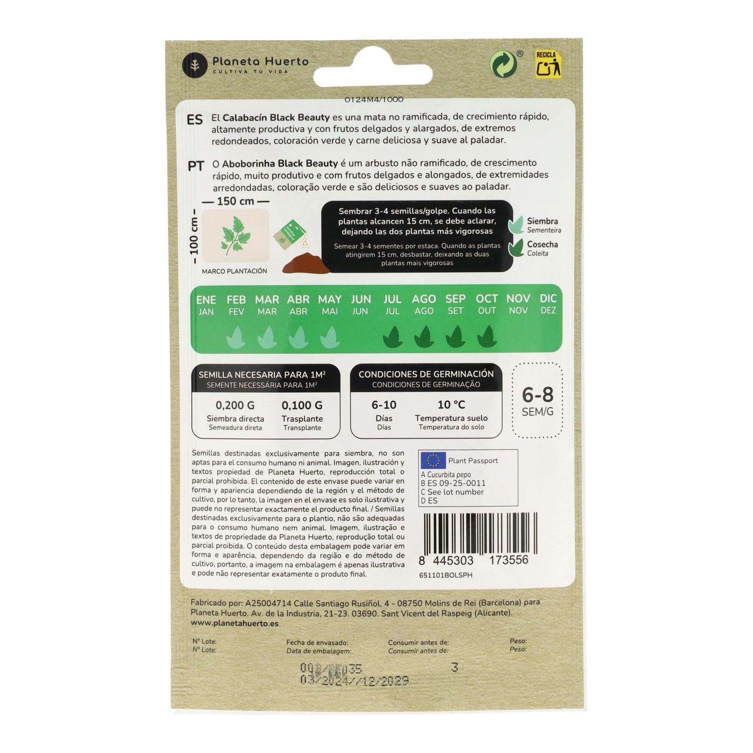 Toda la información sobre "Semillas de Calabacín Black Beauty ecológicas Planeta Huerto"