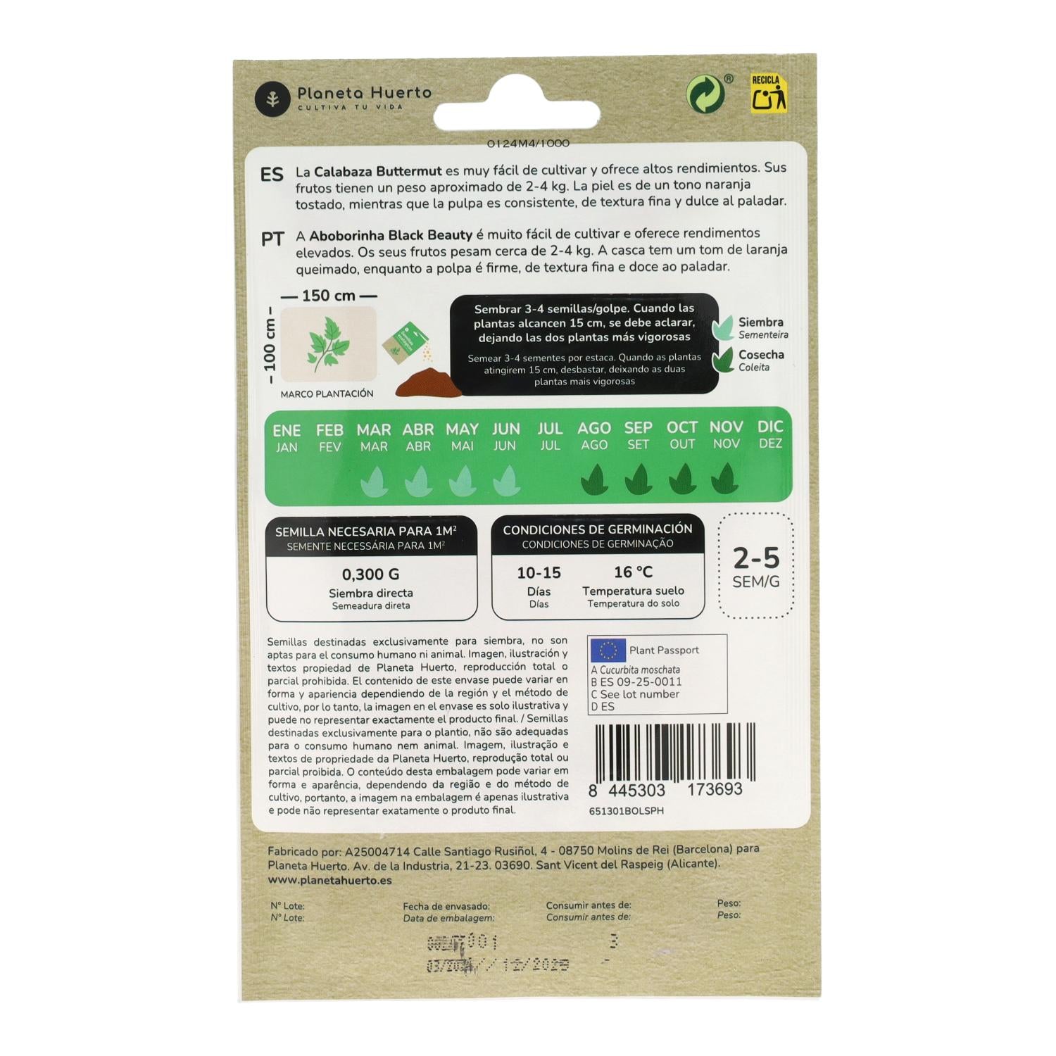 Toda la información sobre "Semillas de Calabaza Butternut ecológicas Planeta Huerto"