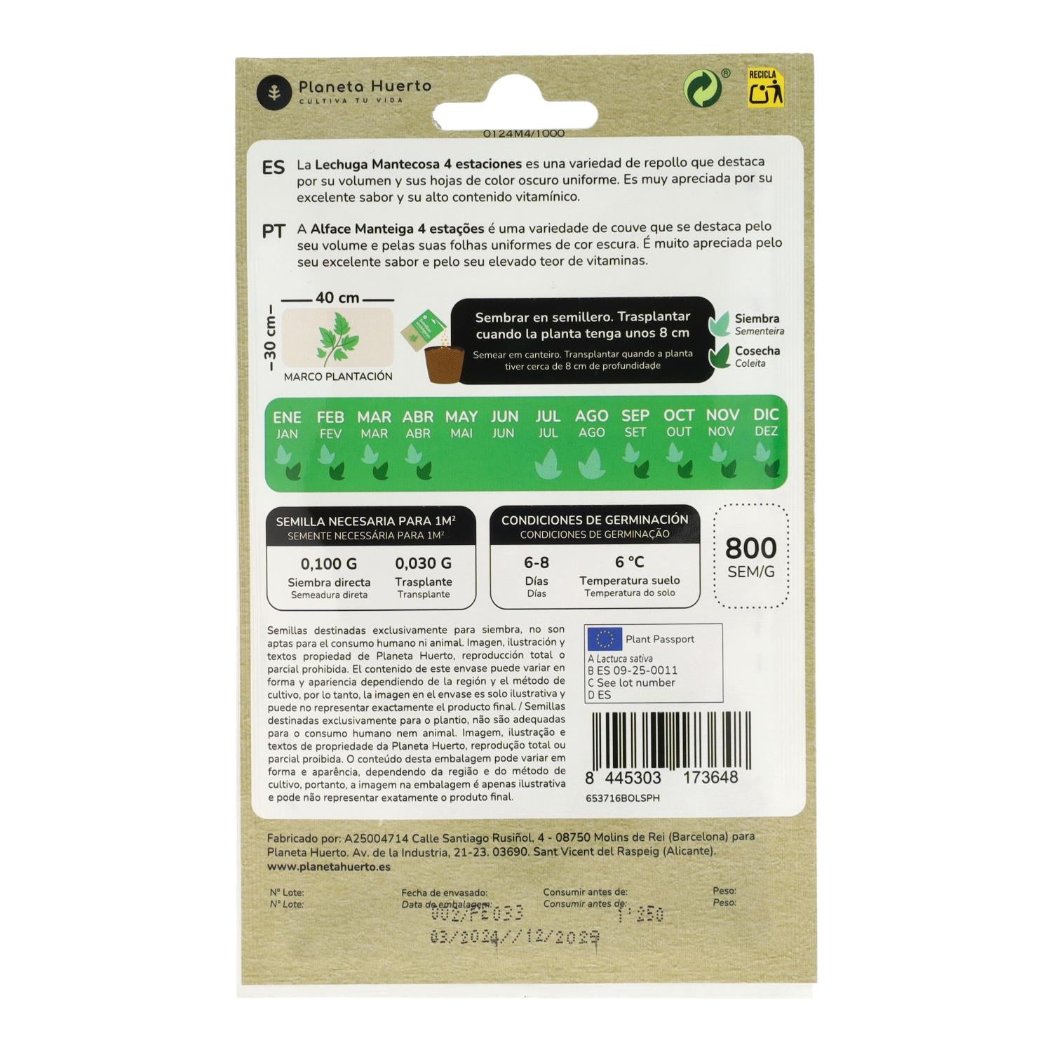 Semillas de Lechuga Mantecosa 4 estaciones ecológicas Planeta Huerto