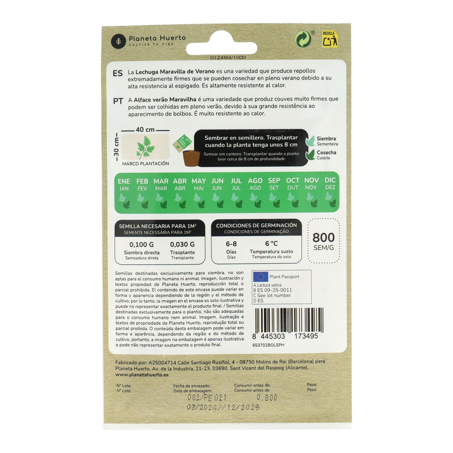 Semillas ecológicas de Lechuga Maravilla de Verano Planeta Huerto