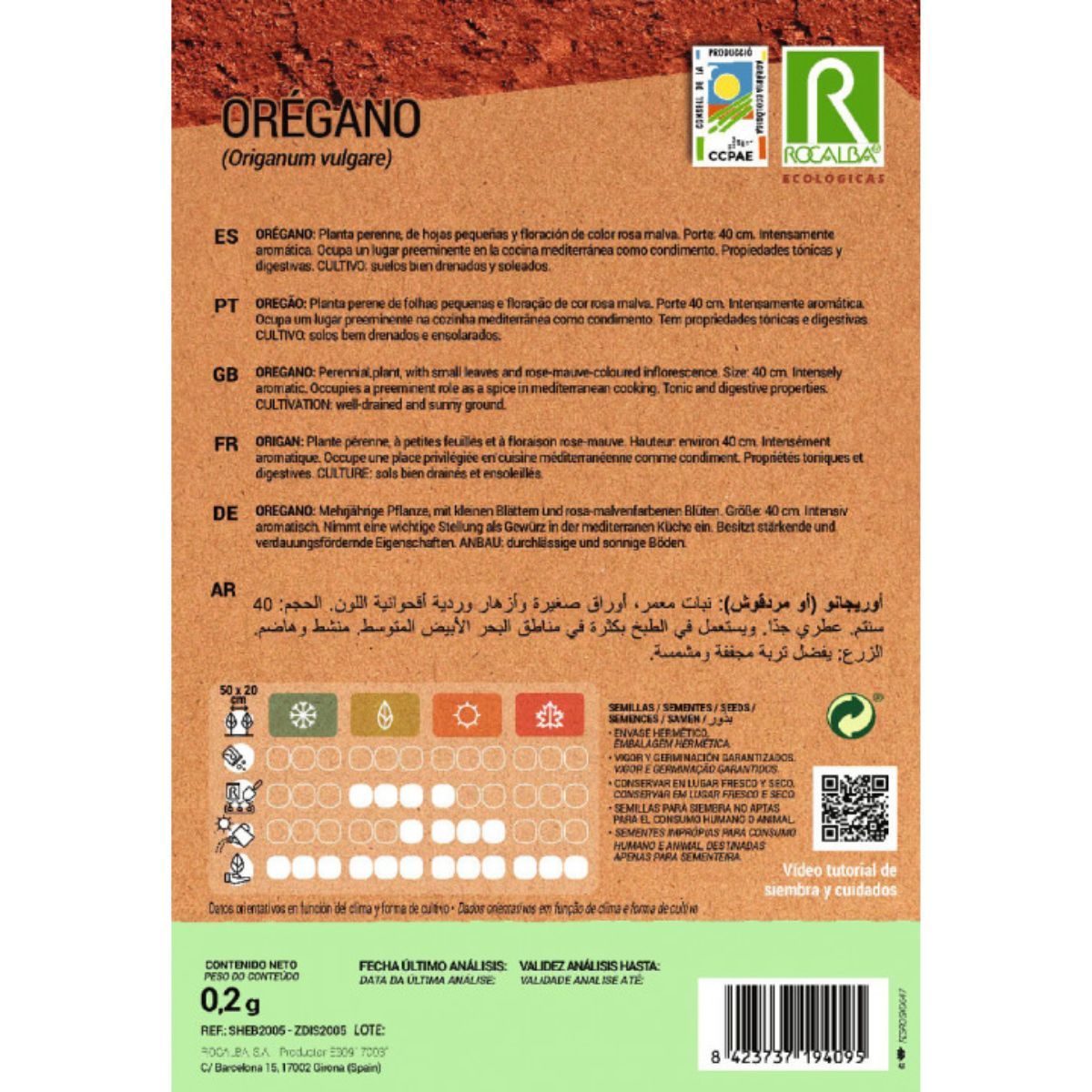 Toda la información sobre "Semillas ecológicas de orégano Rocalba"