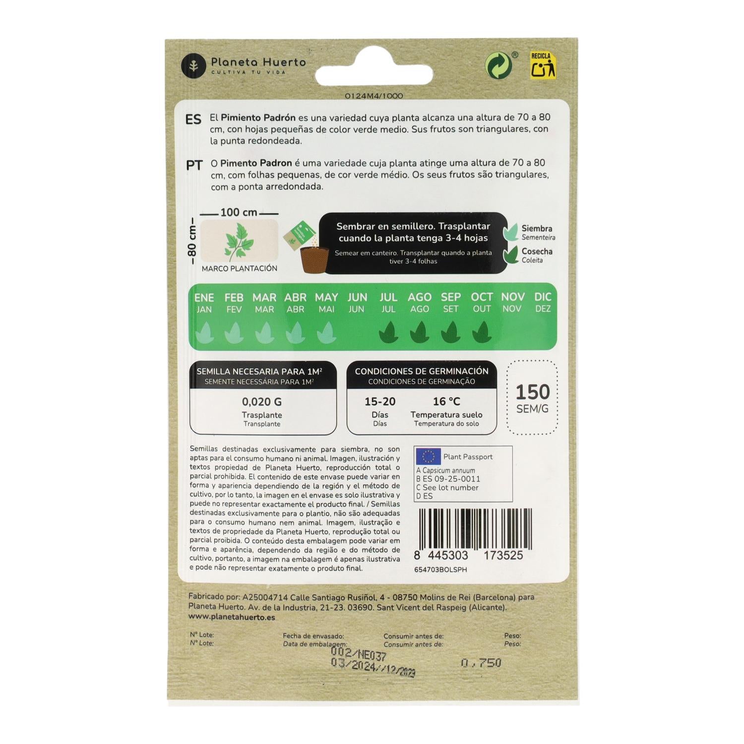 Toda la información sobre "Semillas de Pimiento de Padrón ecológicas Planeta Huerto"