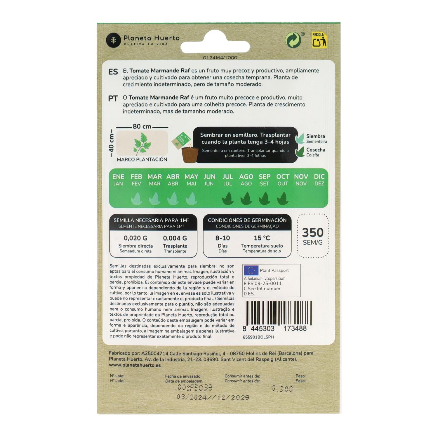 Toda la información sobre "Semillas de Tomate marmande Raf ecológicas Planeta Huerto"