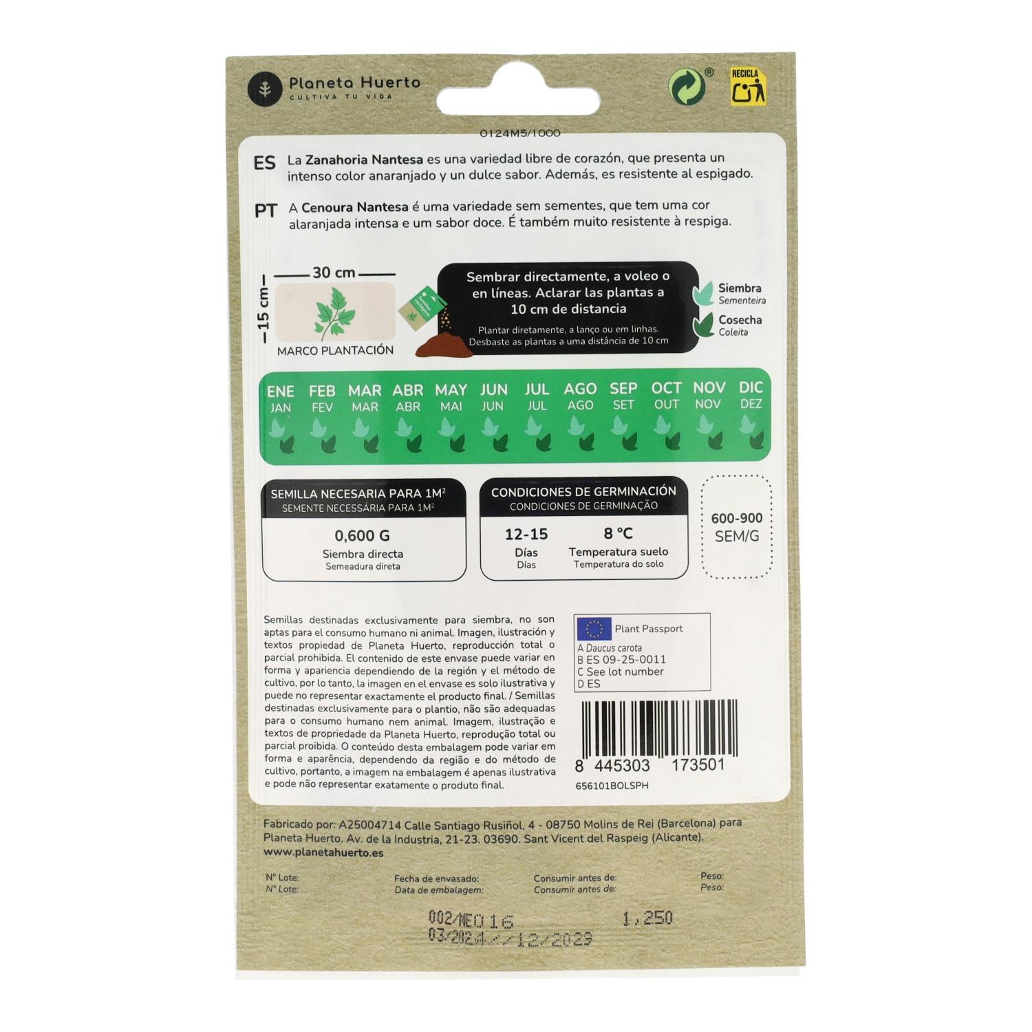 Toda la información sobre "Semillas de Zanahoria Nantesa ecológicas Planeta Huerto"