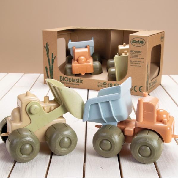2 vehículos de 21 cm fabricados con un 96% de caña de azúcar y cartón 100% renovable. Producto 100% reciclable.