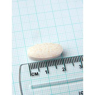 Tableta ovalada con recubrimiento claro moteado.