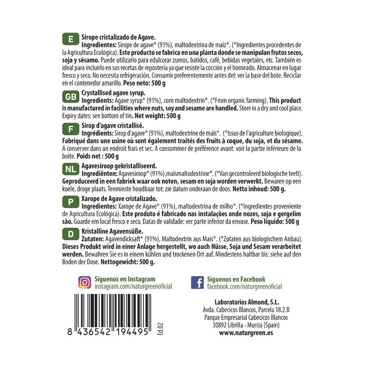 Sirope Cristalizado De Agave Bio 500 G Naturgreen