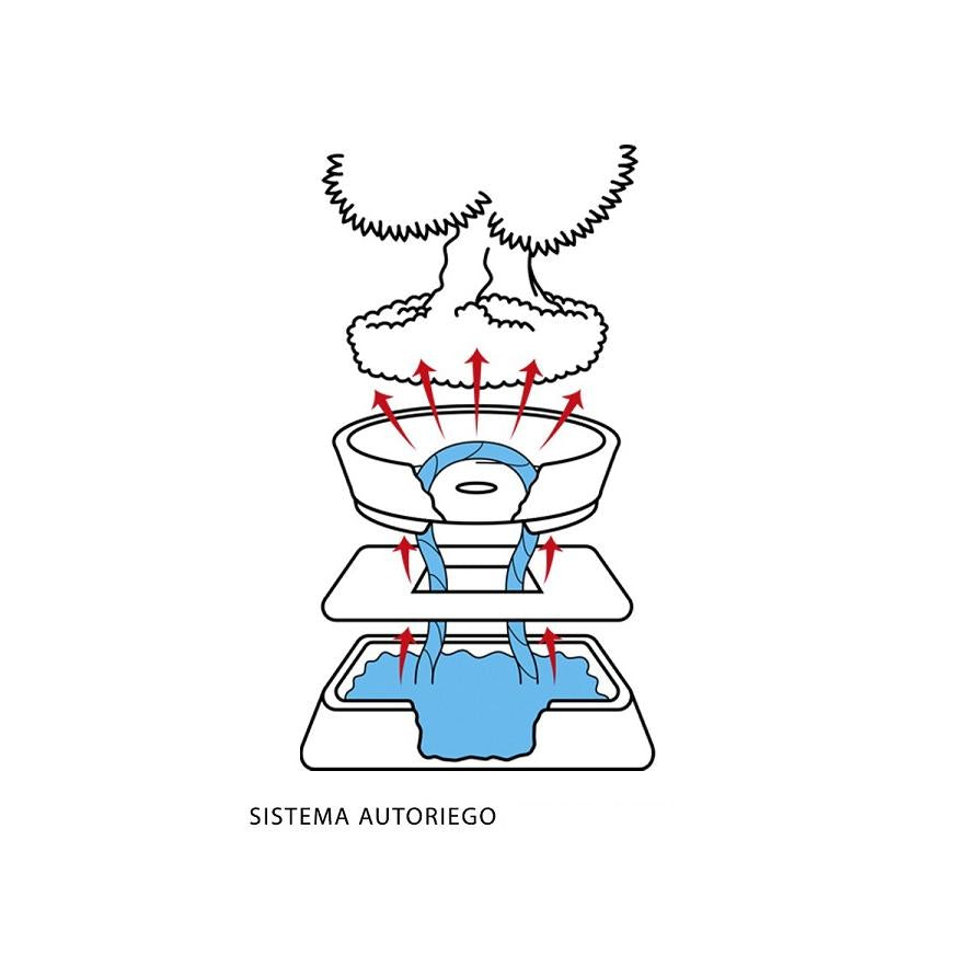 - El agua sube con suavidad desde el depósito hasta el sustrato de la planta.