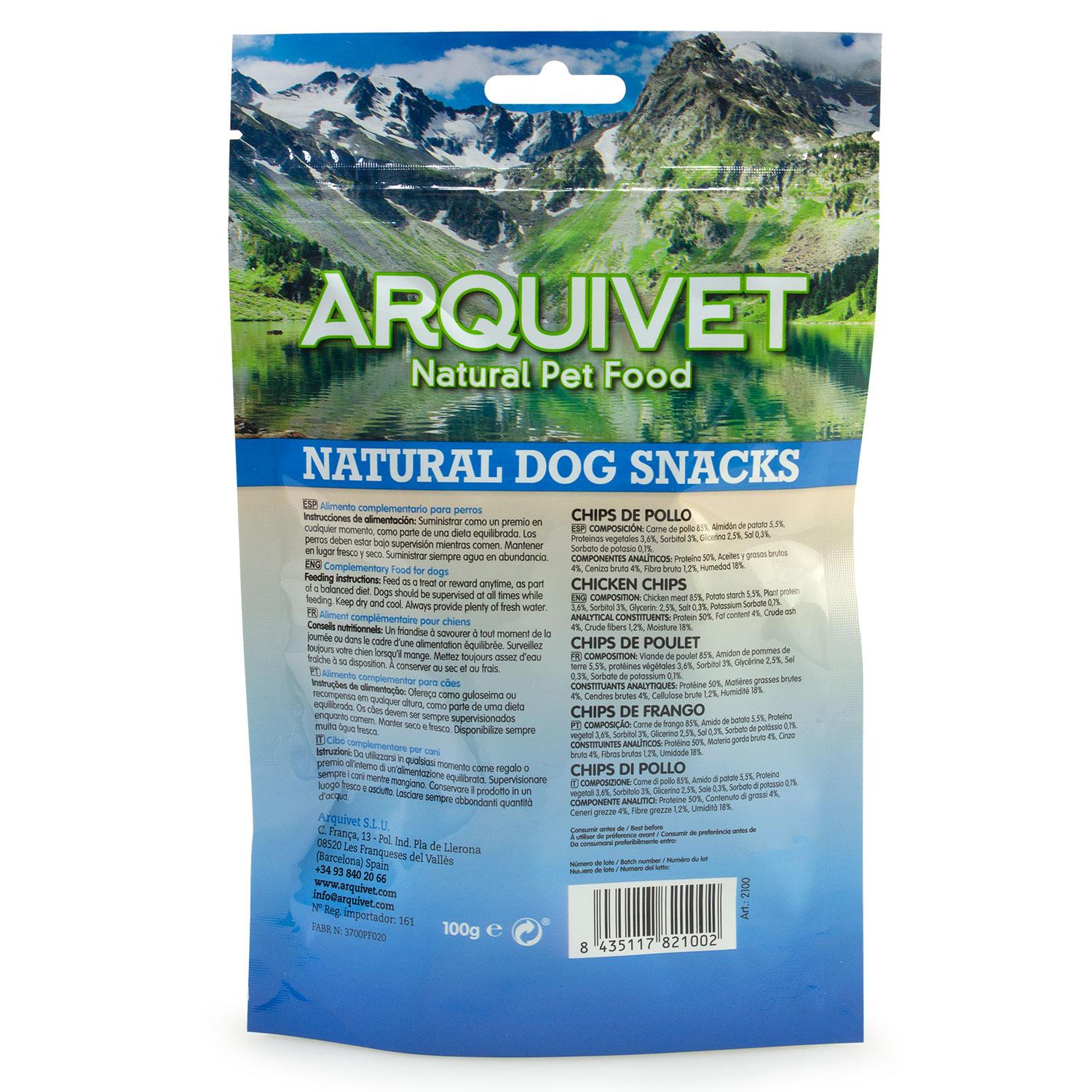 Toda la información sobre "Snack natural para perros Chips de pollo Arquivet 100 g"