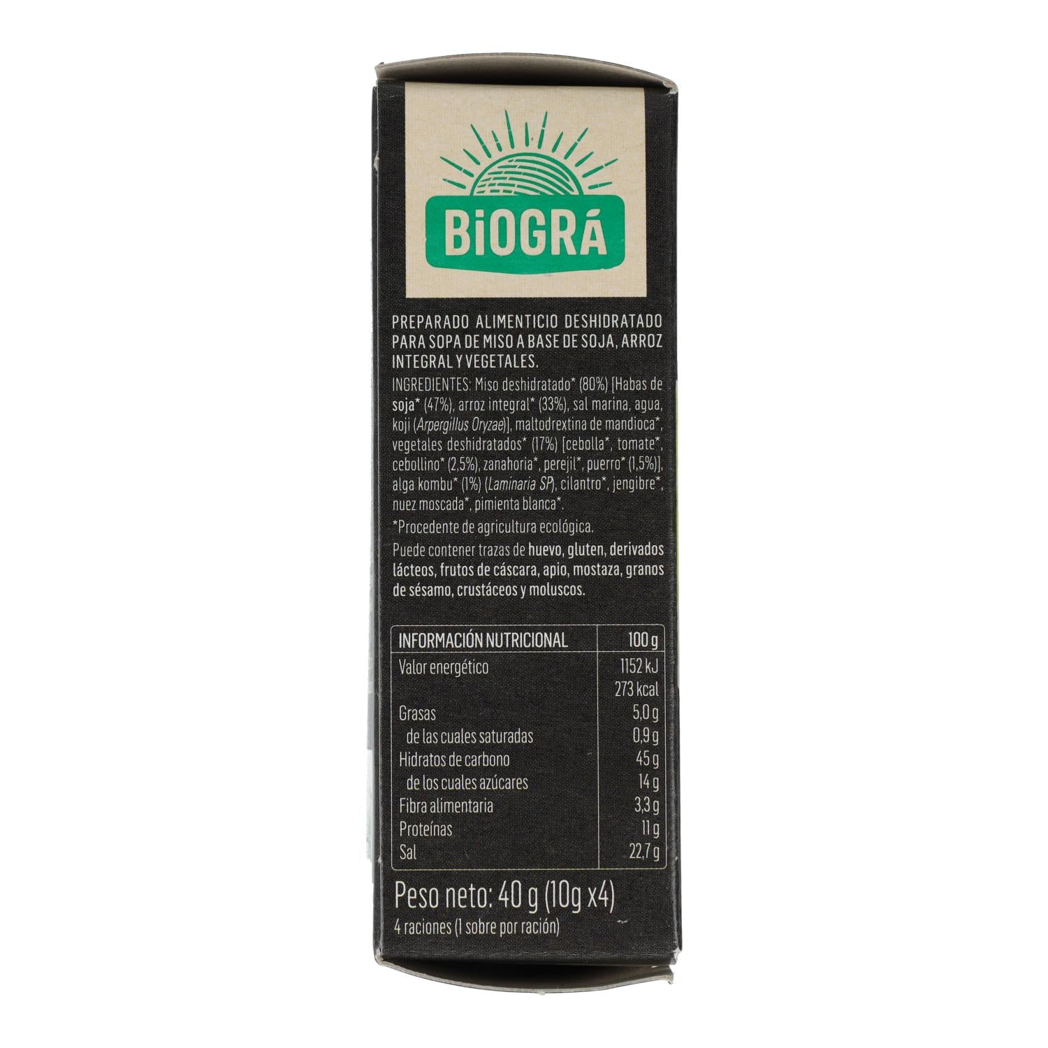 Toda la información sobre "Sopa Miso rojo con Verduras Biográ, 4x10 g"