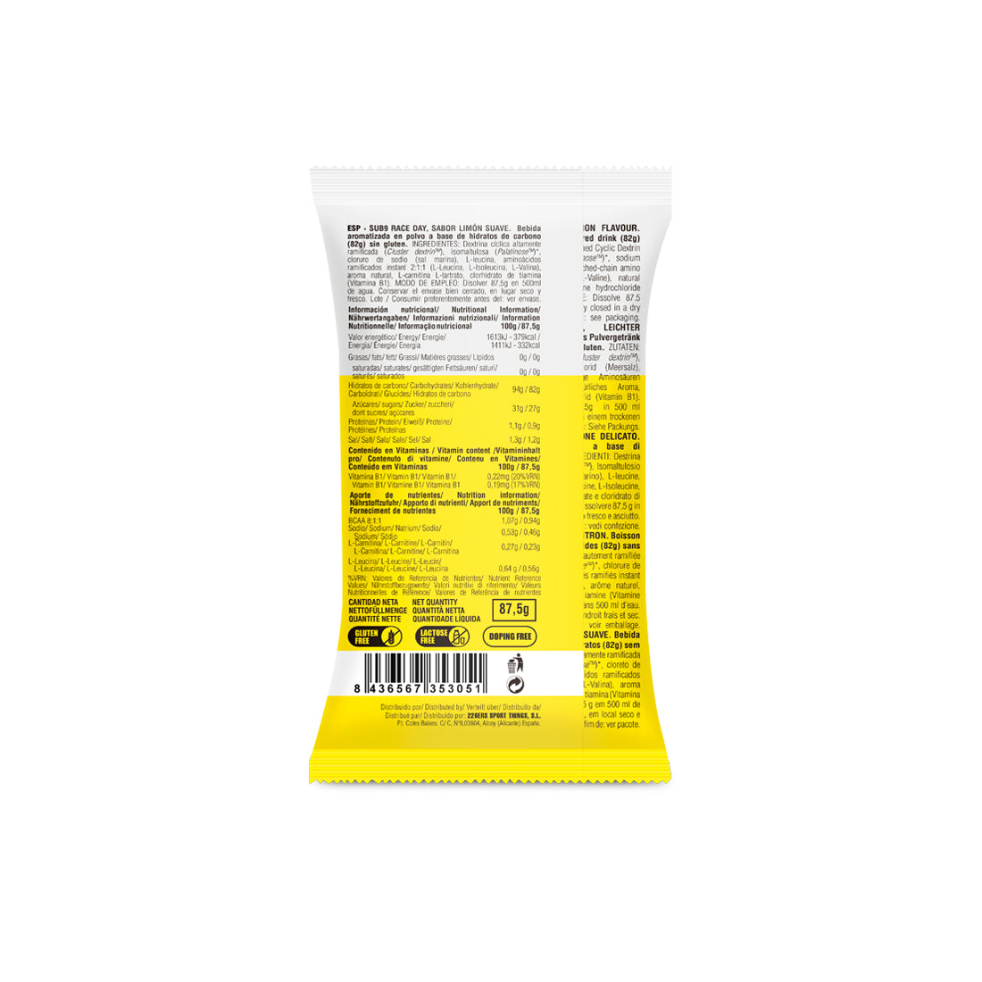 SUB9 RACE DAY se presenta en formato monodosis y sabor limón suave.