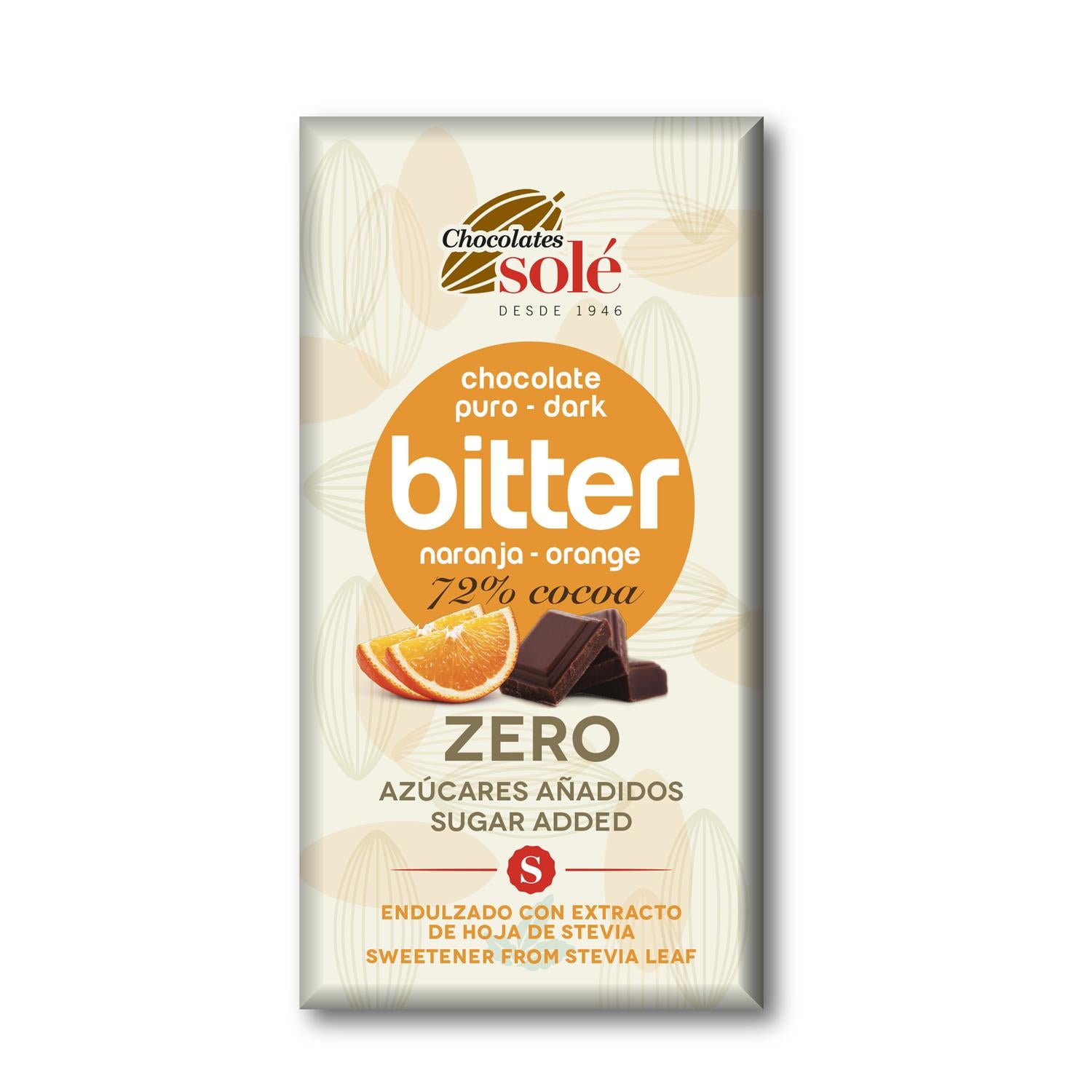 Toda la información sobre "Tableta de chocolate 72% Stevia naranja Bitter 100g Solé"