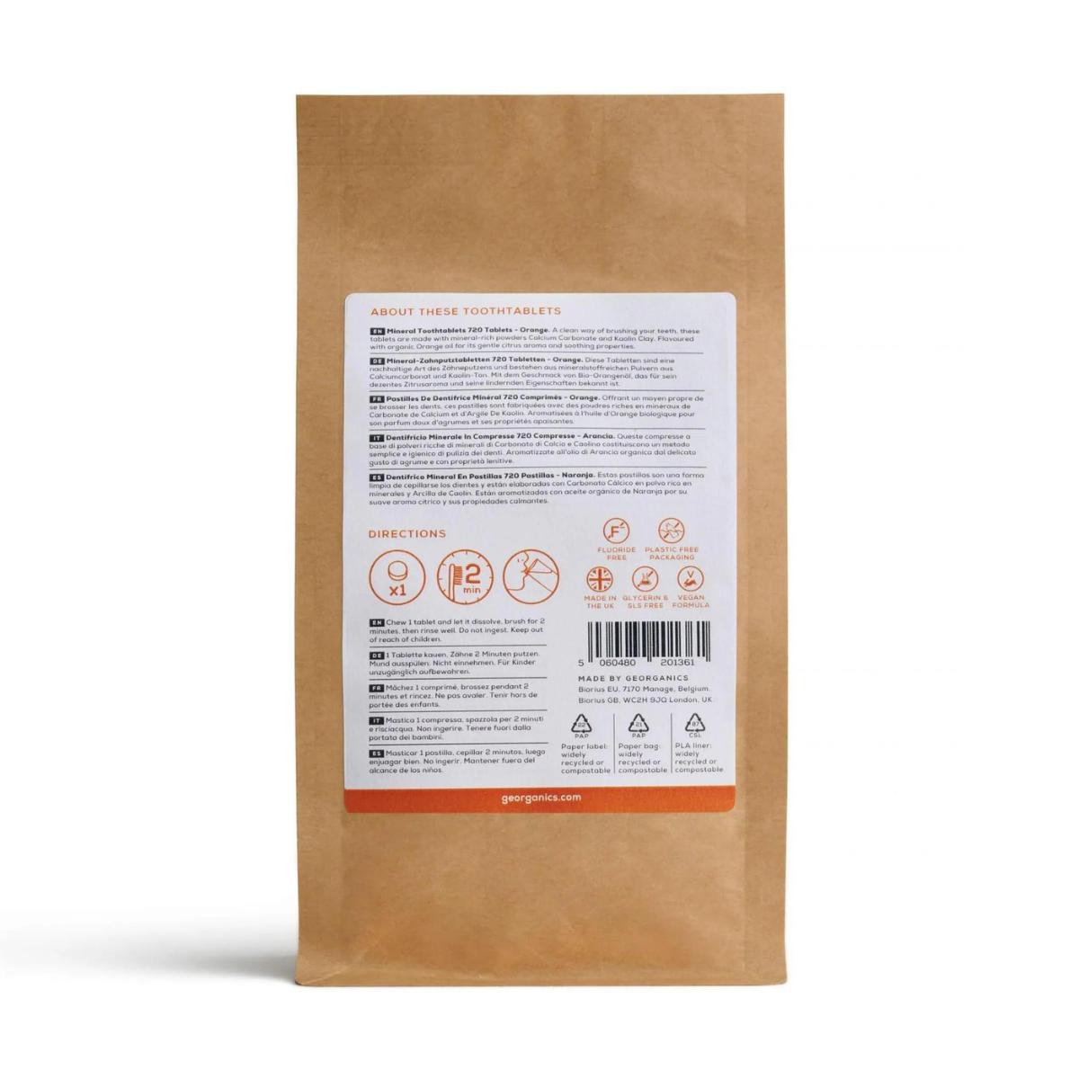 Toda la información sobre "Tableta de pasta dental mineral de naranja, Georganics 720 unidades"