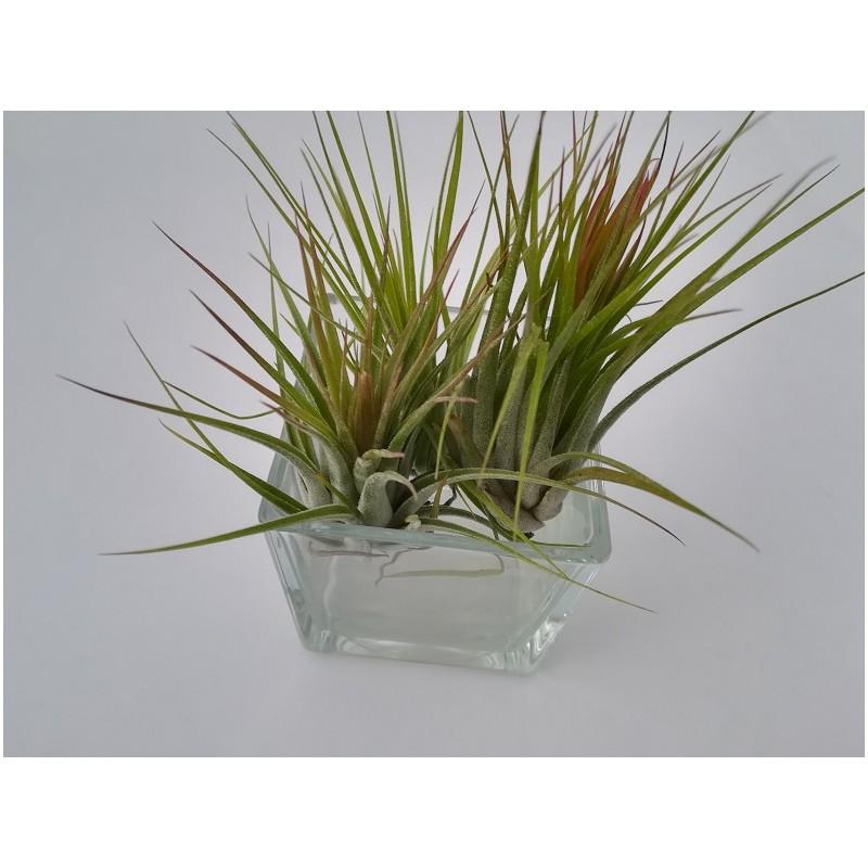 - Se puede atar la planta con un hilo en un tronco o pegar la base de la tillandsia con pegamento a un soporte, encima de una mesa, en un cable, una ventana, una puerta, una piedra, en cualquier hueco, sobre arena de río, ... etc