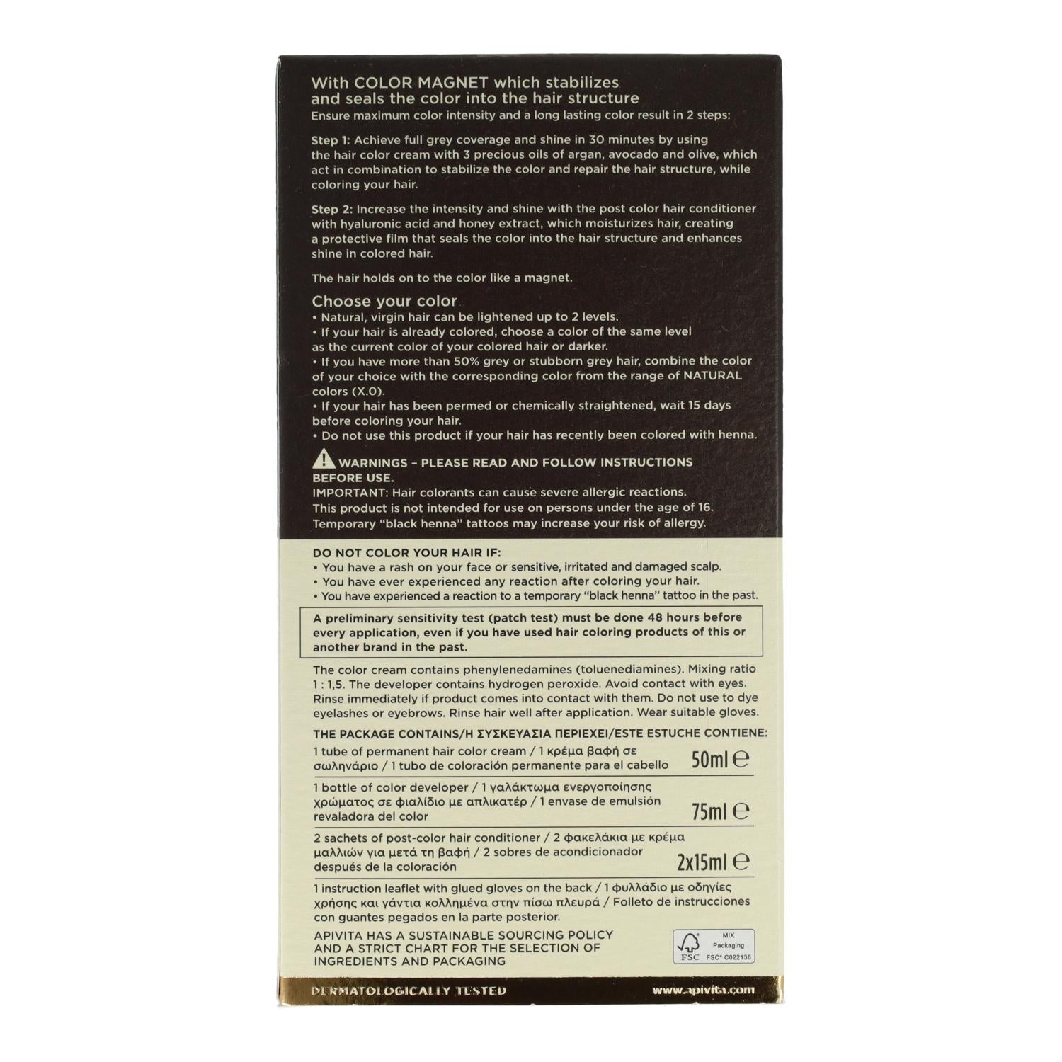Toda la información sobre "Tinte My Color Elixir N8.38 Apivita"