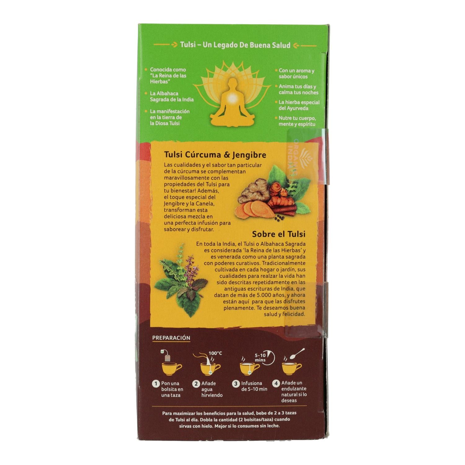 Toda la información sobre "Tulsi Turmeric Ginger Organic India 25 bolsitas"