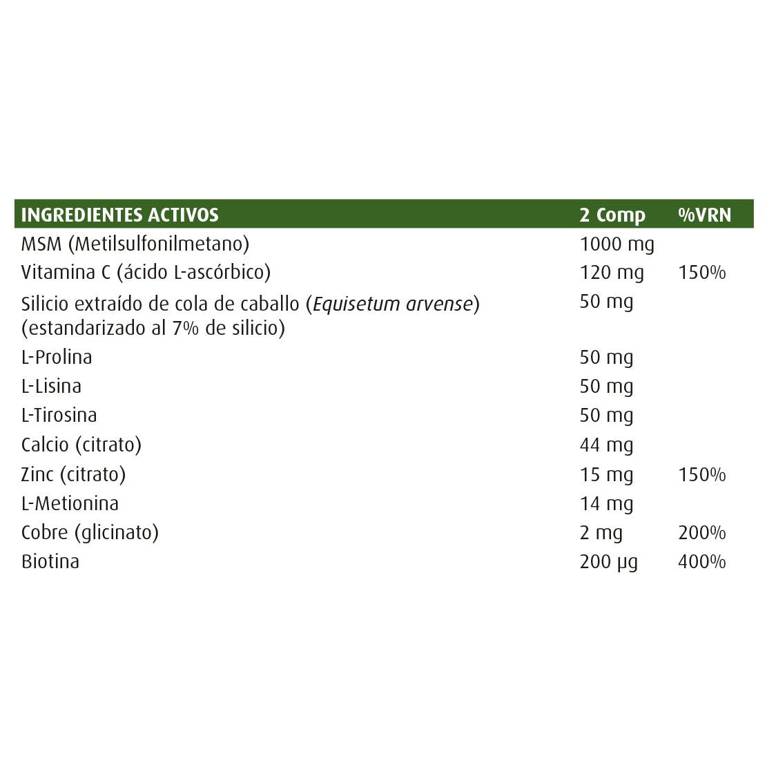 Combinación de nutrientes, como el zinc y la biotina,indicados para el mantenimiento de las estructuras queconforman la piel, las uñas y el cabello, adecuada parahombre y mujer.Apto para vegetarianos. Sin gluten.