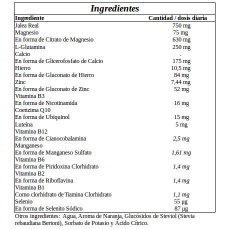 Complemento alimenticio pensado para personas mayores de 50 años. Su ingrediente base es la jalea real. La jalea real, es un ingrediente creado por la abejas para alimentar a las crías y a la abeja reina.