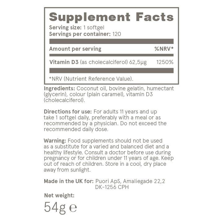 Toda la información sobre "Vitamina D Puori 120 cápsulas"