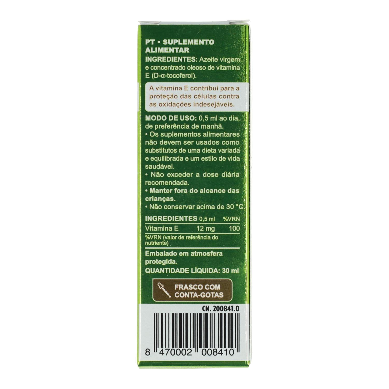 La vitamina E es un antioxidante liposoluble que ayuda a proteger las membranas celulares del estrés oxidativo causado por los radicales libres. Este producto es apto para veganos, vegetarianos, niños a partir de 4 años, mujeres embarazadas y en período de lactancia. Su formato líquido con gotero facilita una dosificación precisa y cómoda.